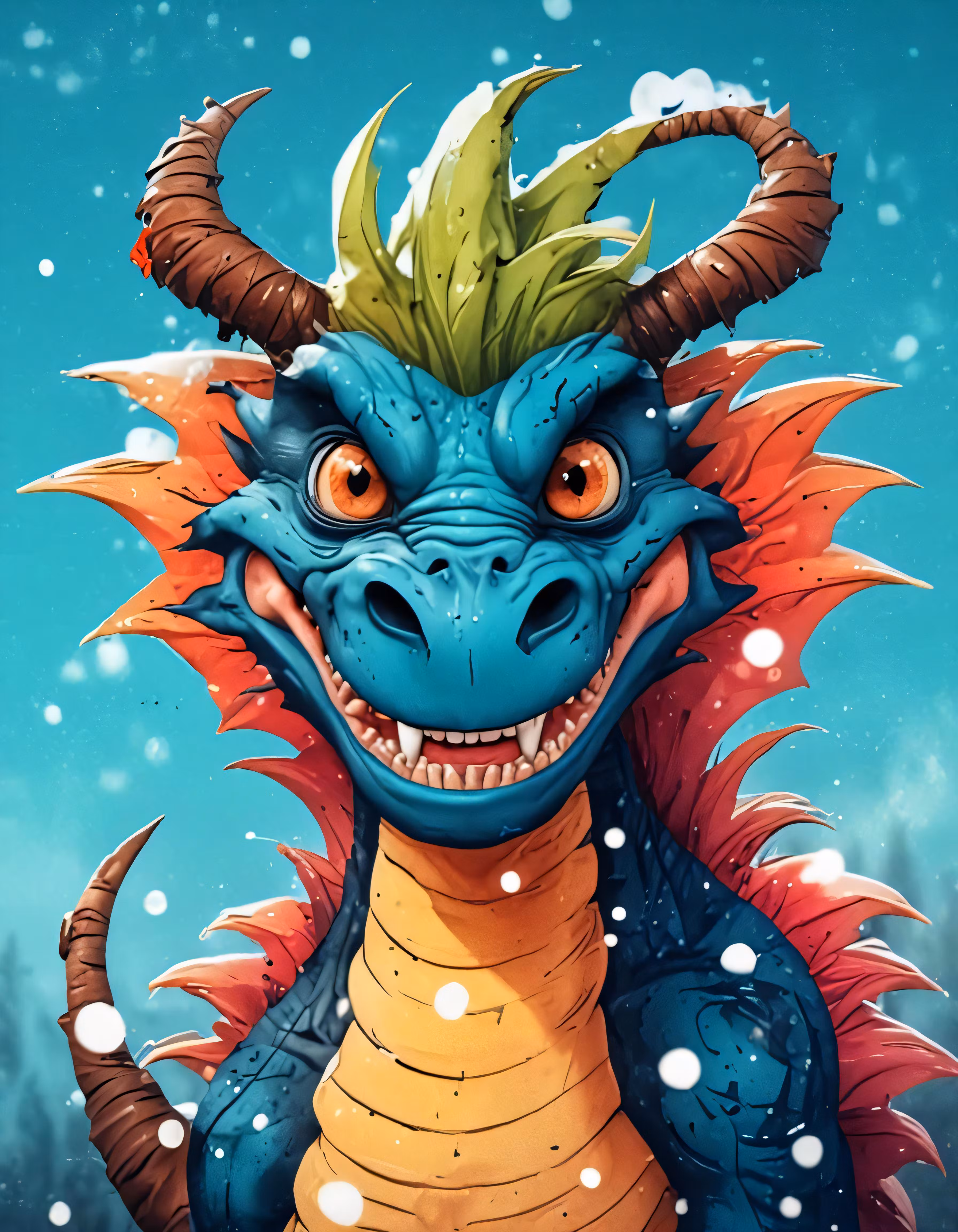 High resolution picture, free to use, an illustration of a dragon with horns and fangs