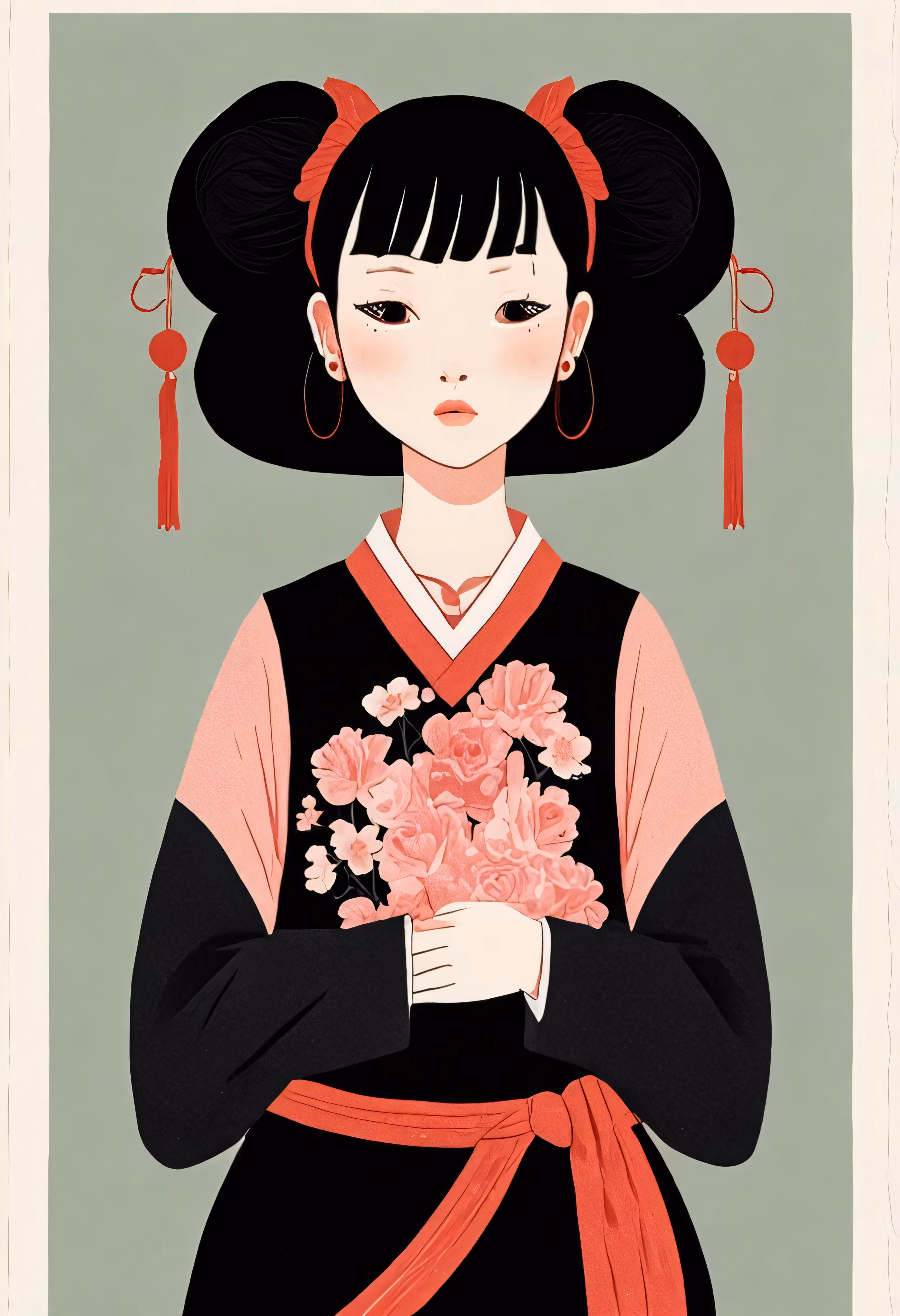 High resolution picture, free to use, an illustration of a geisha girl wearing traditional clothing