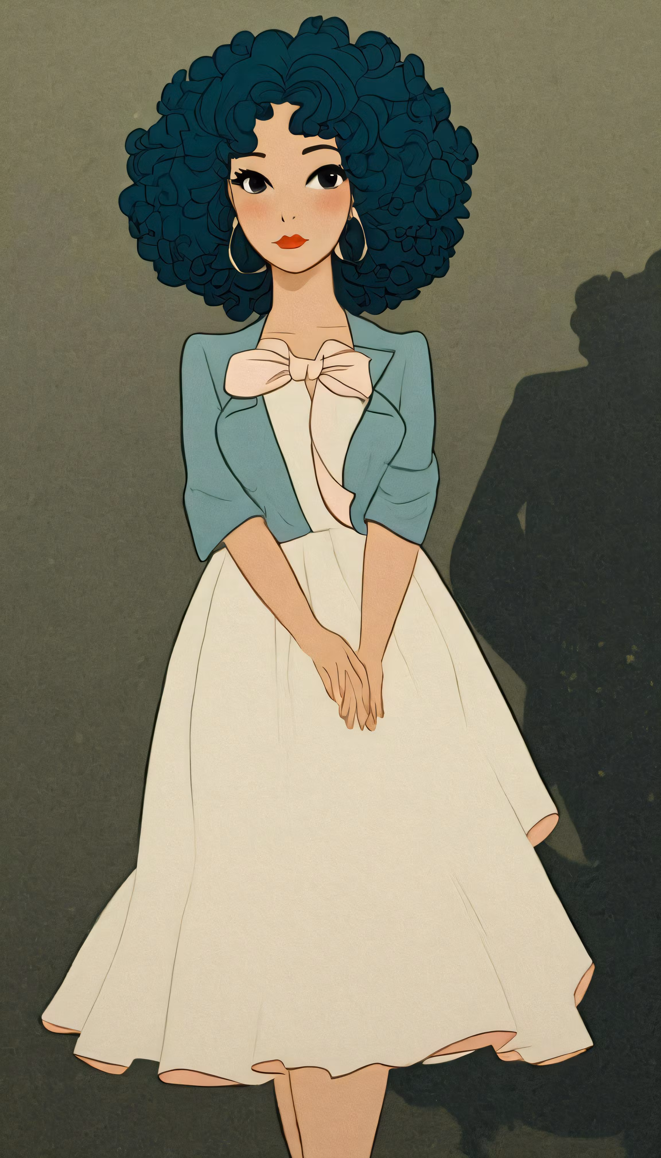High resolution picture, free to use, an illustration of a girl with dark hair and bright blue lips