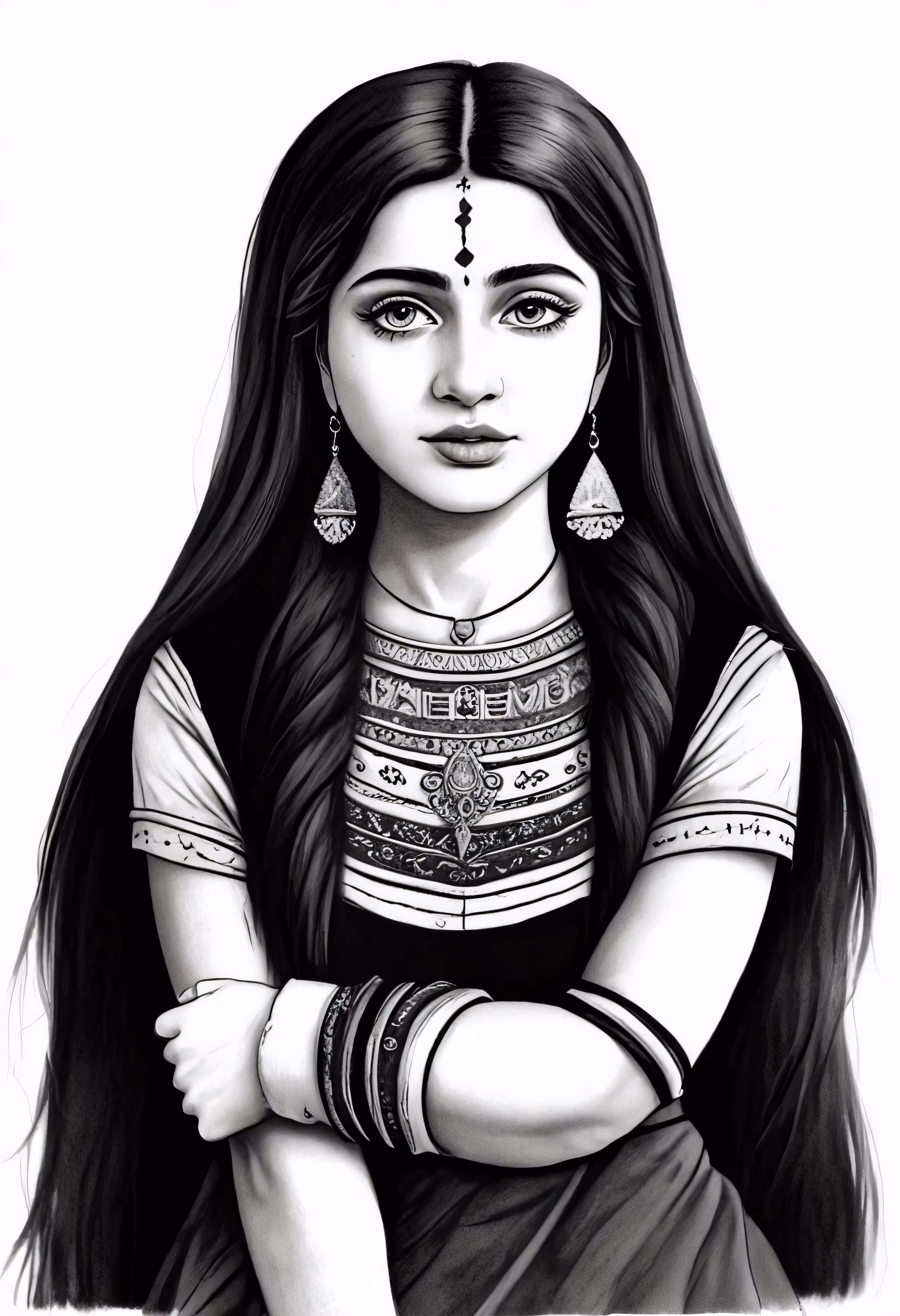 High resolution picture, free to use, an illustration of a girl with long hair in front of a white background