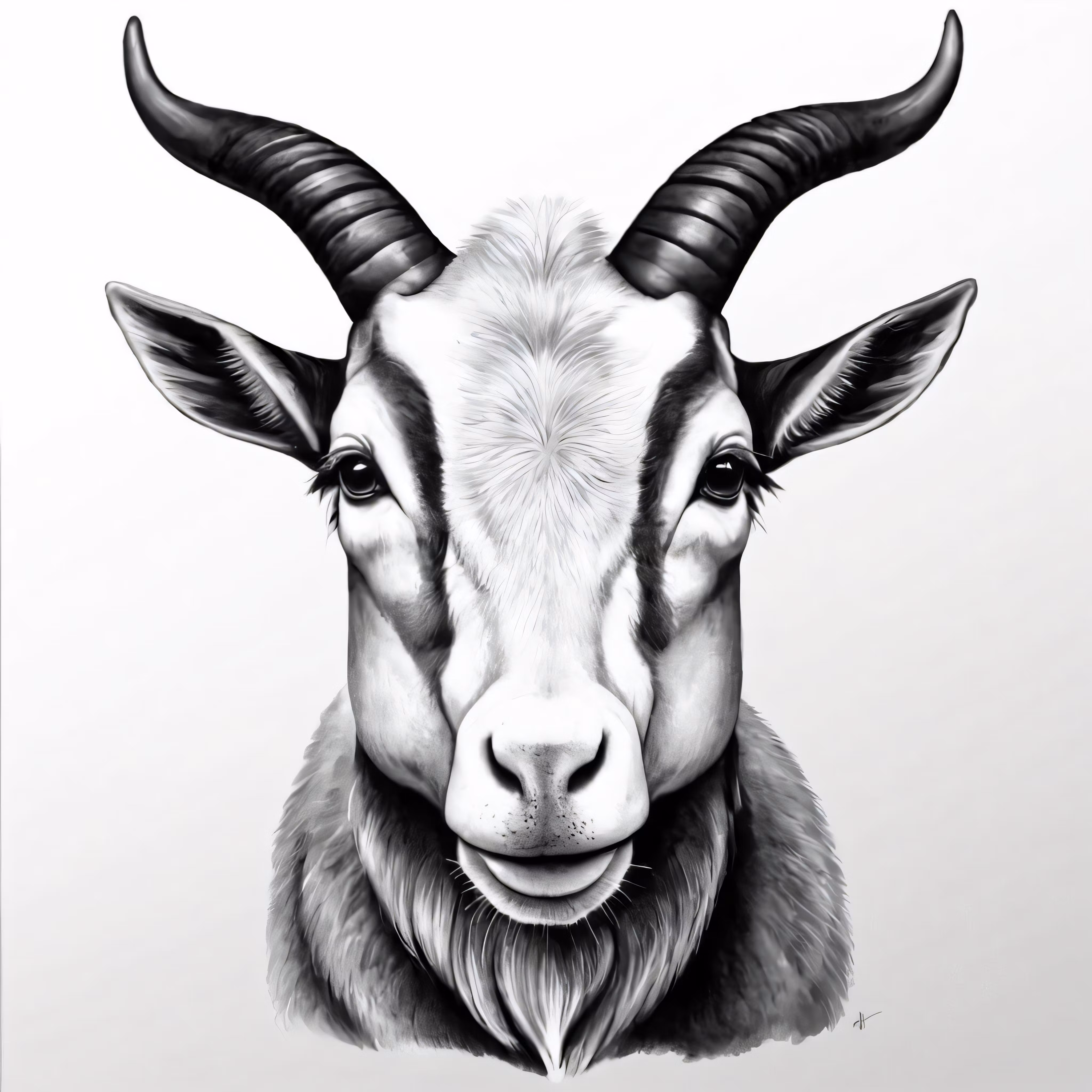 High resolution picture, free to use, an illustration of a horned goat in black and white