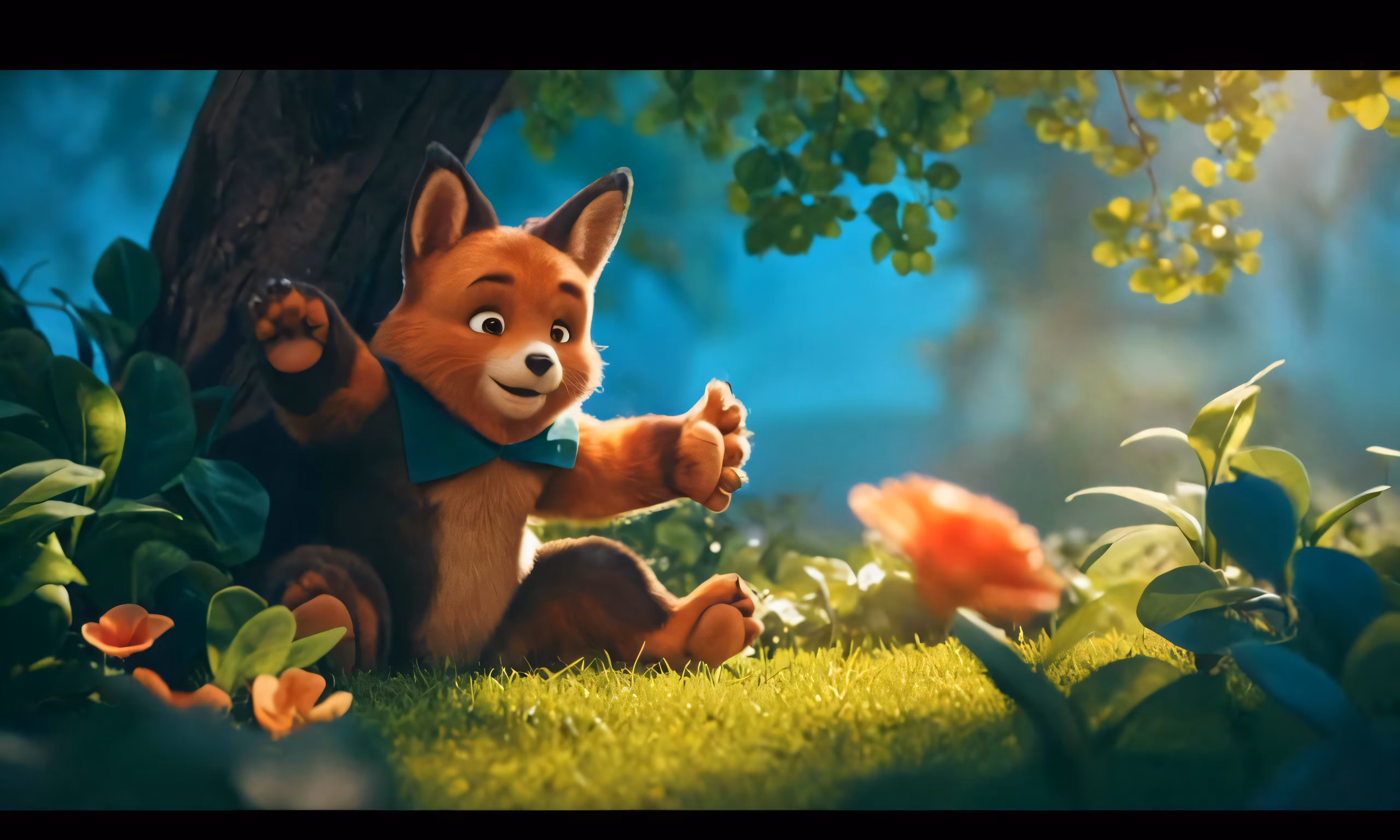 High resolution picture, free to use, an illustration of a little red fox sitting in the grass
