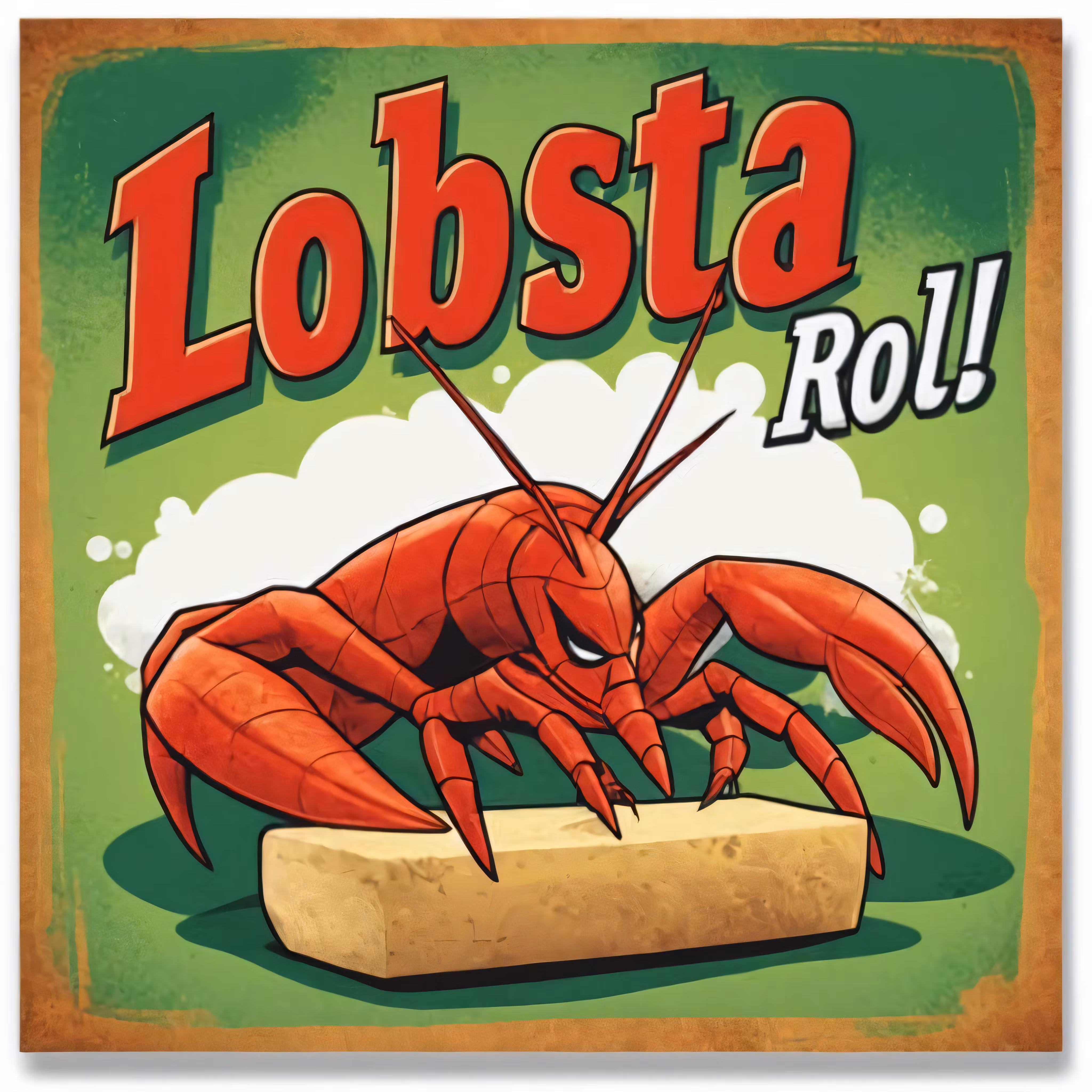High resolution picture, free to use, an illustration of a lobster on a block of wood