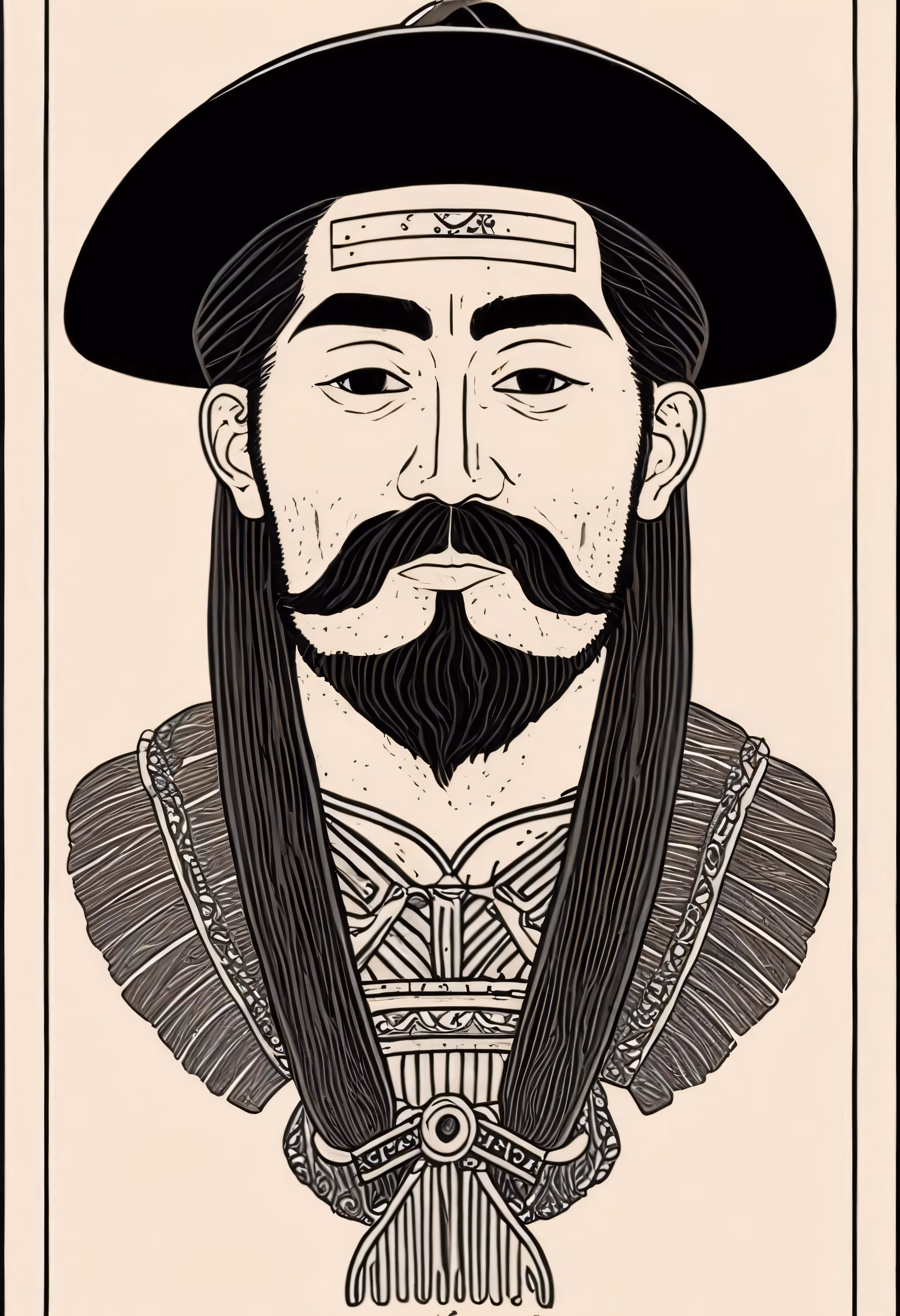 High resolution picture, free to use, an illustration of a man with beards wearing a black hat