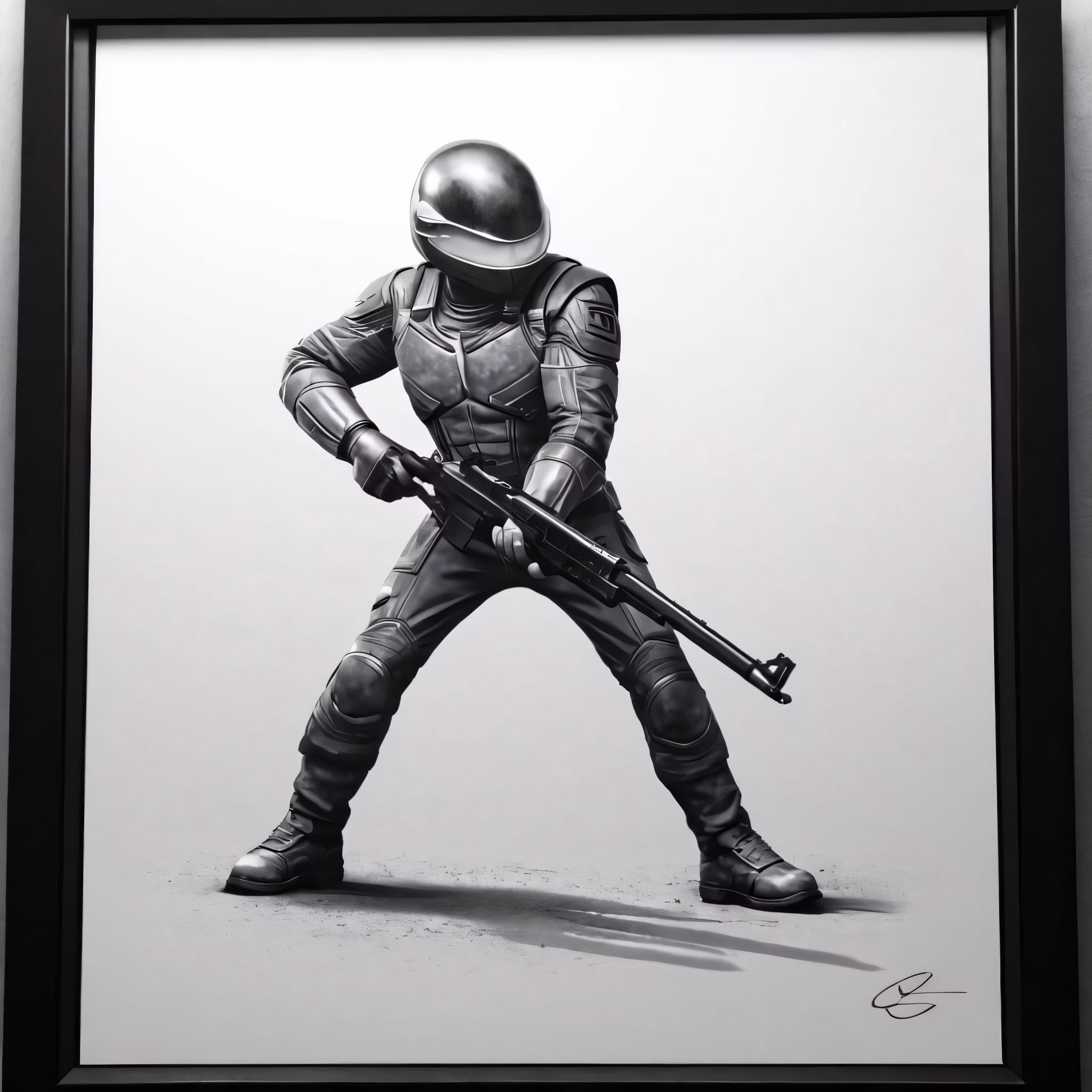 High resolution picture, free to use, an illustration of a soldier holding a rifle