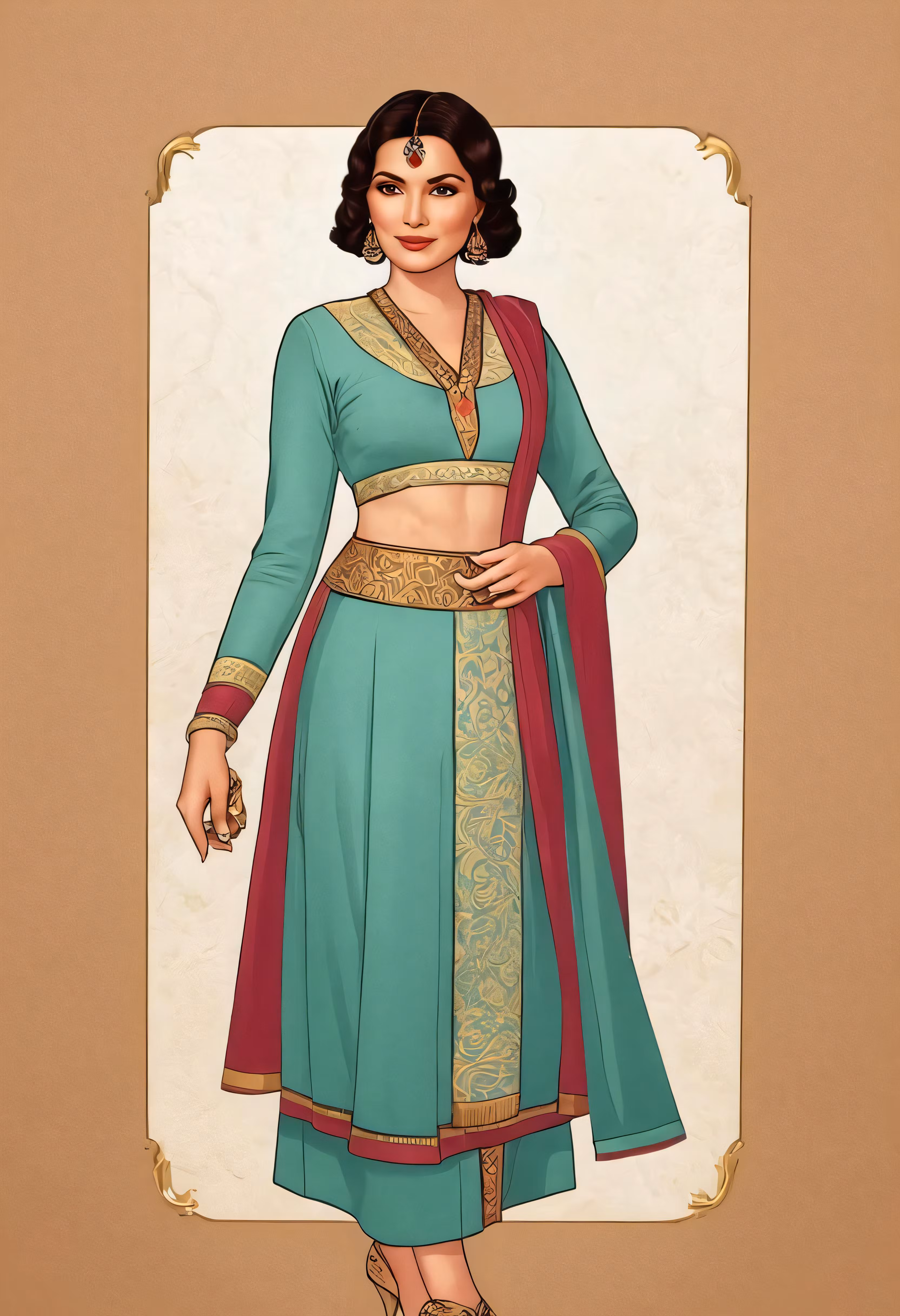 High resolution picture, free to use, an illustration of a woman wearing green dress