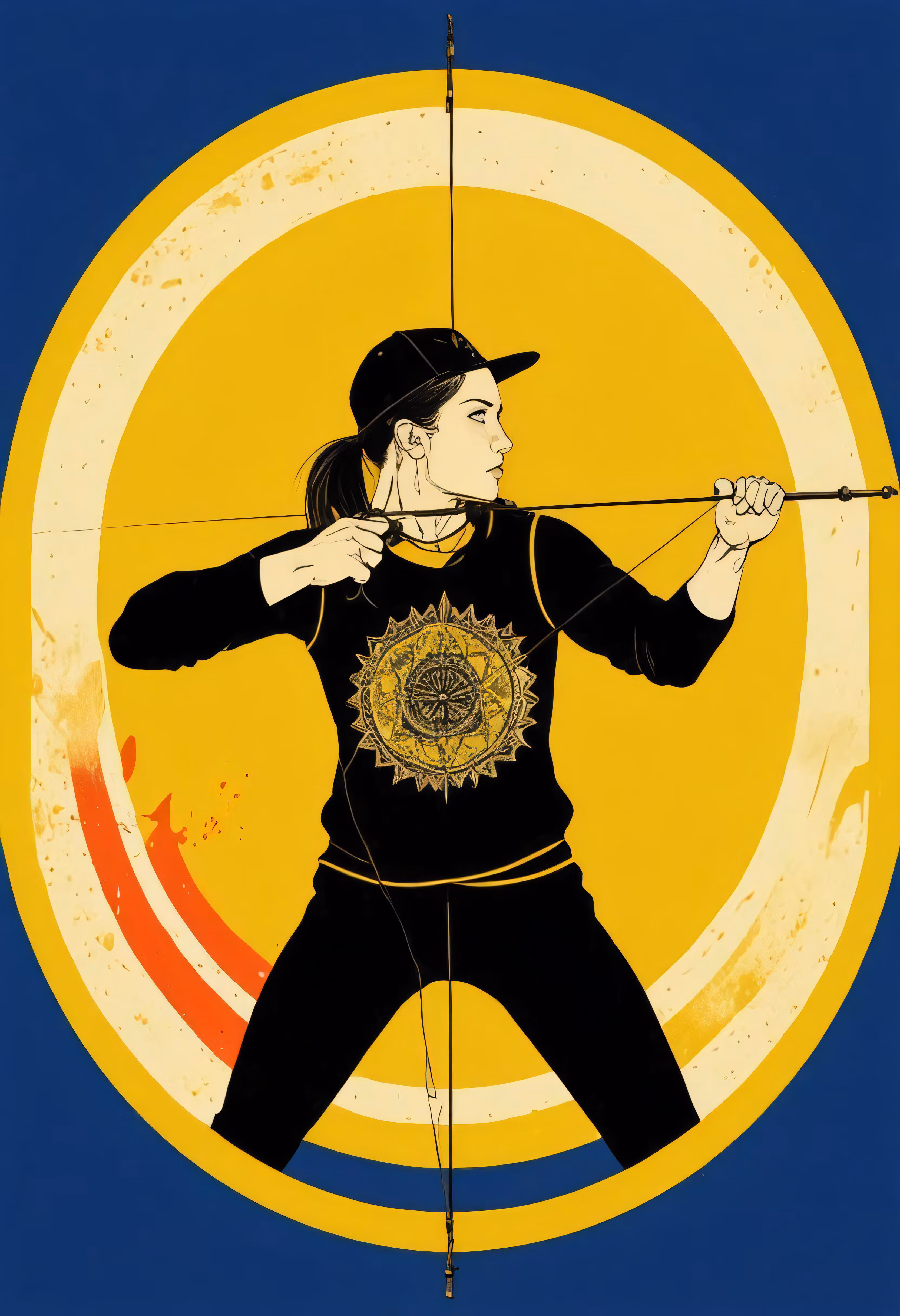 High resolution picture, free to use, an illustration of a woman with a bow in the air