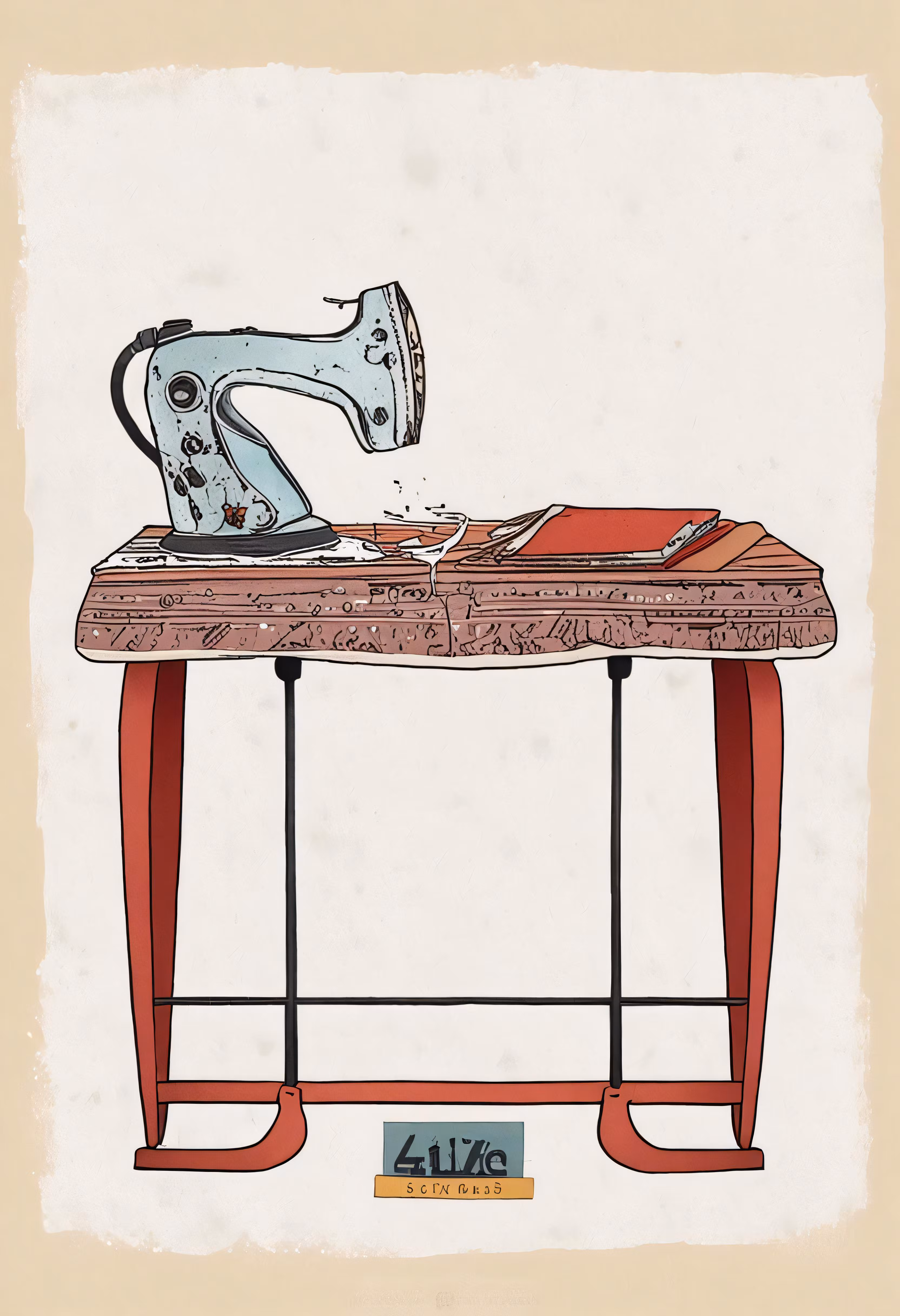 High resolution picture, free to use, an illustration of an old sewing machine sitting on a table