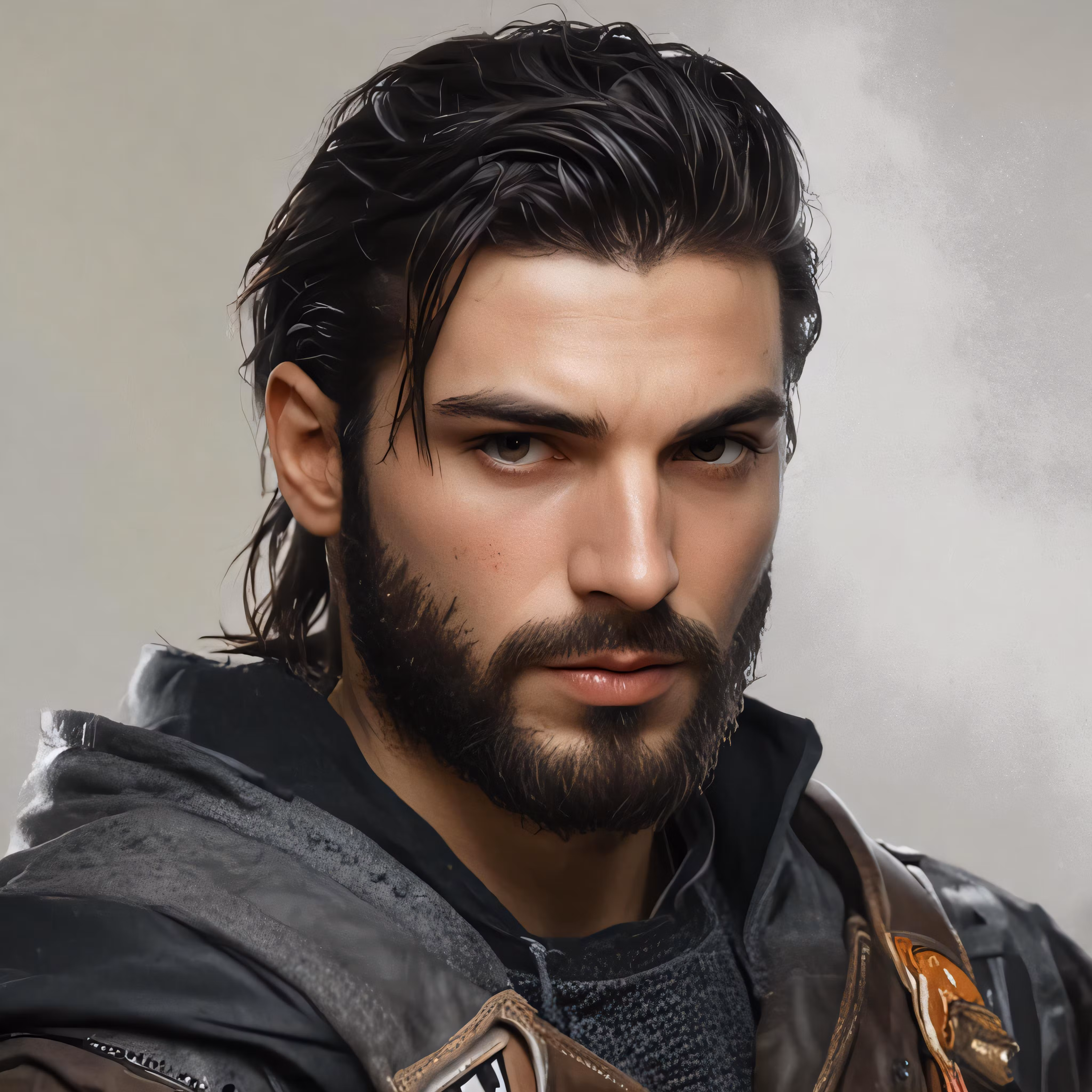 High resolution picture, free to use, an illustration of the face of a man in armor