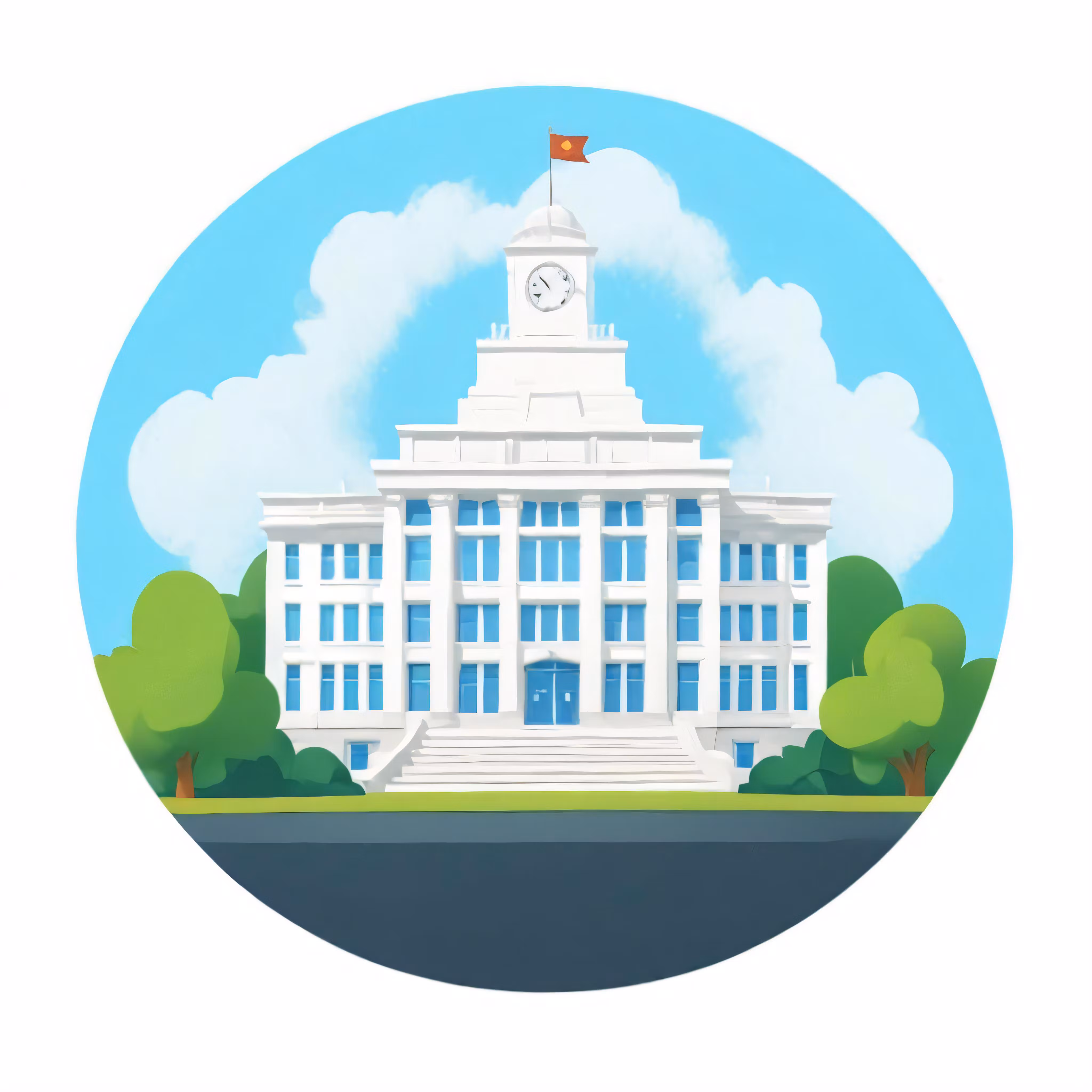 High resolution picture, free to use, an illustration of the state building in a round frame