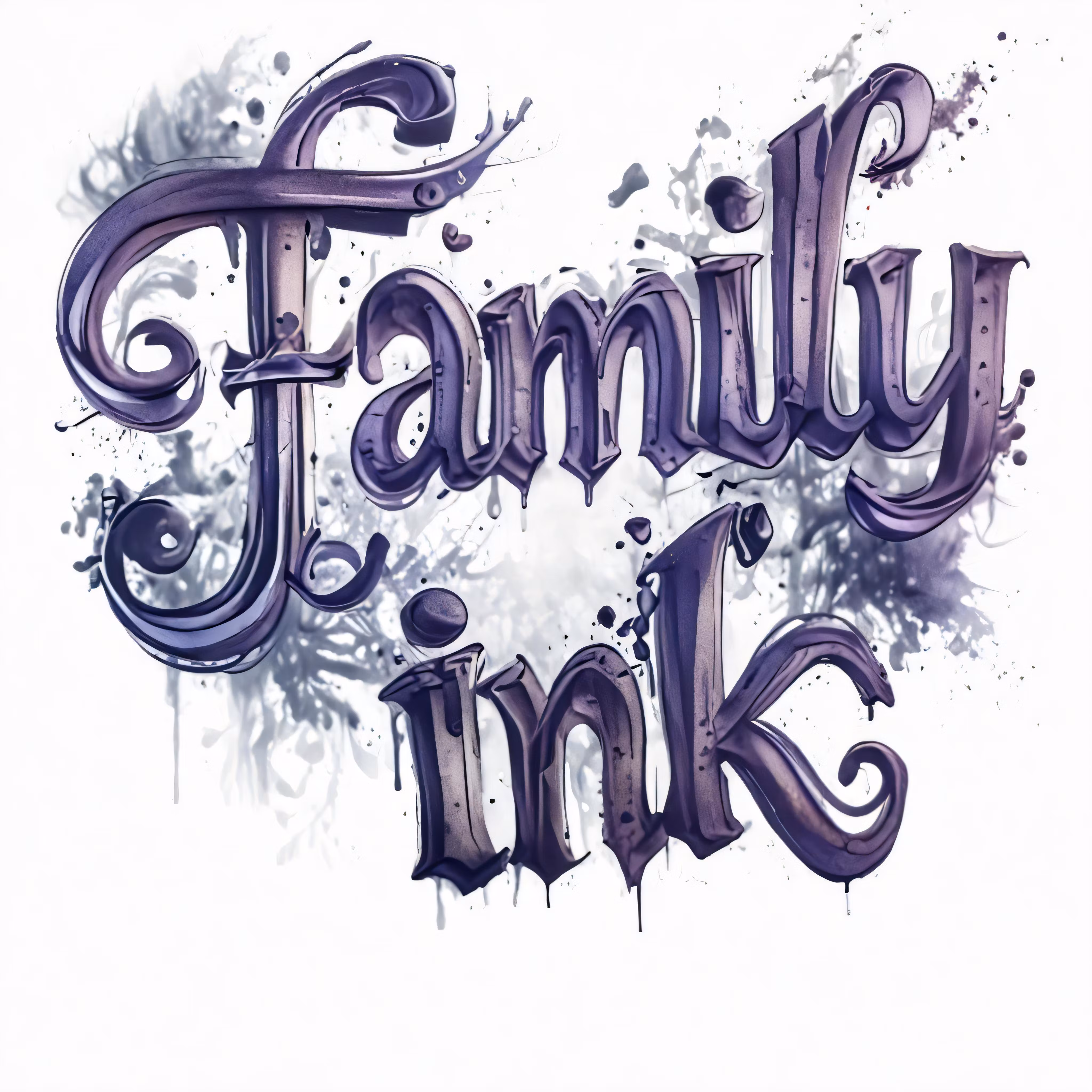 High resolution picture, free to use, an illustration of the words family ink in silver letters