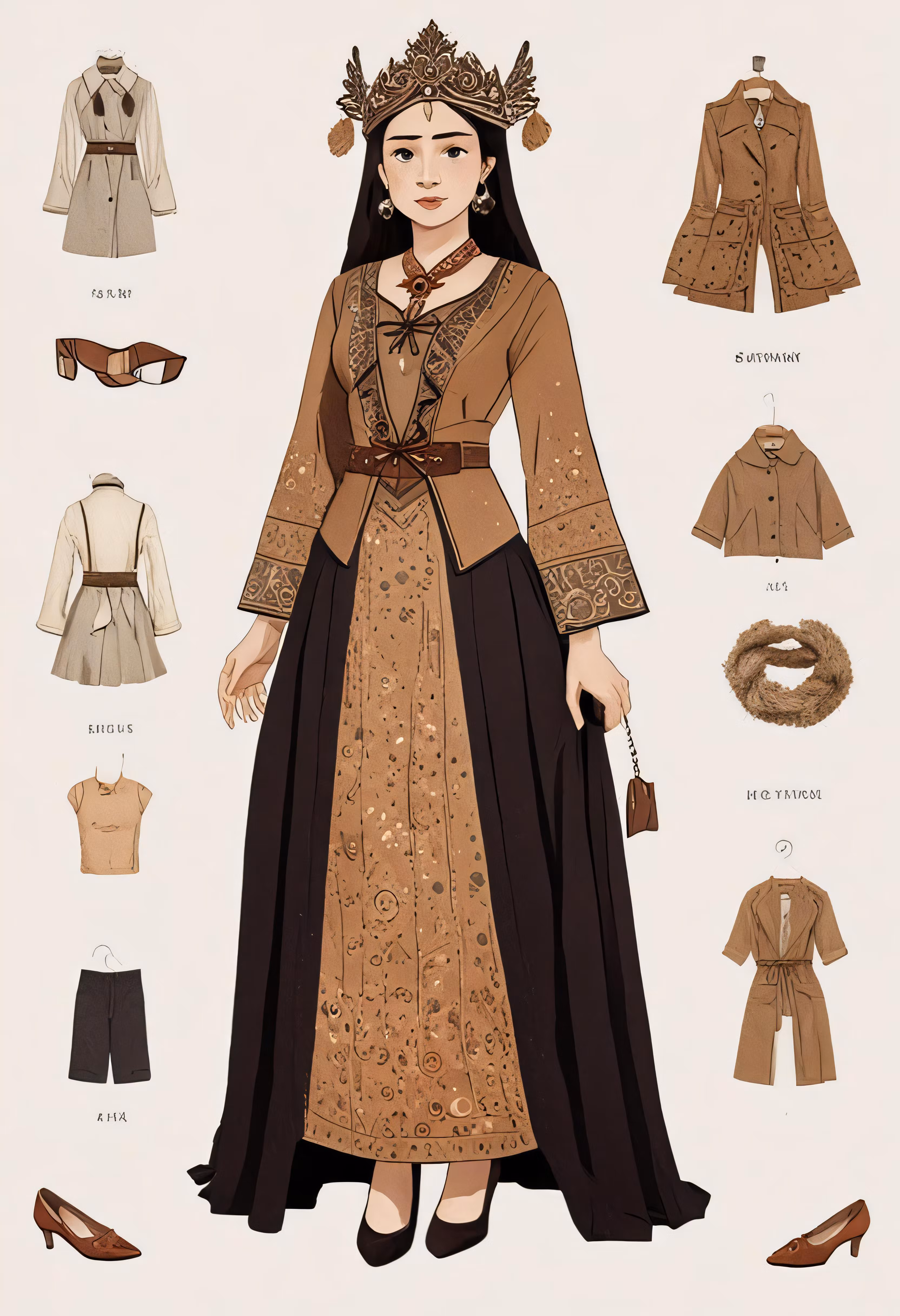 High resolution picture, free to use, an illustration shows the different clothing styles for a woman