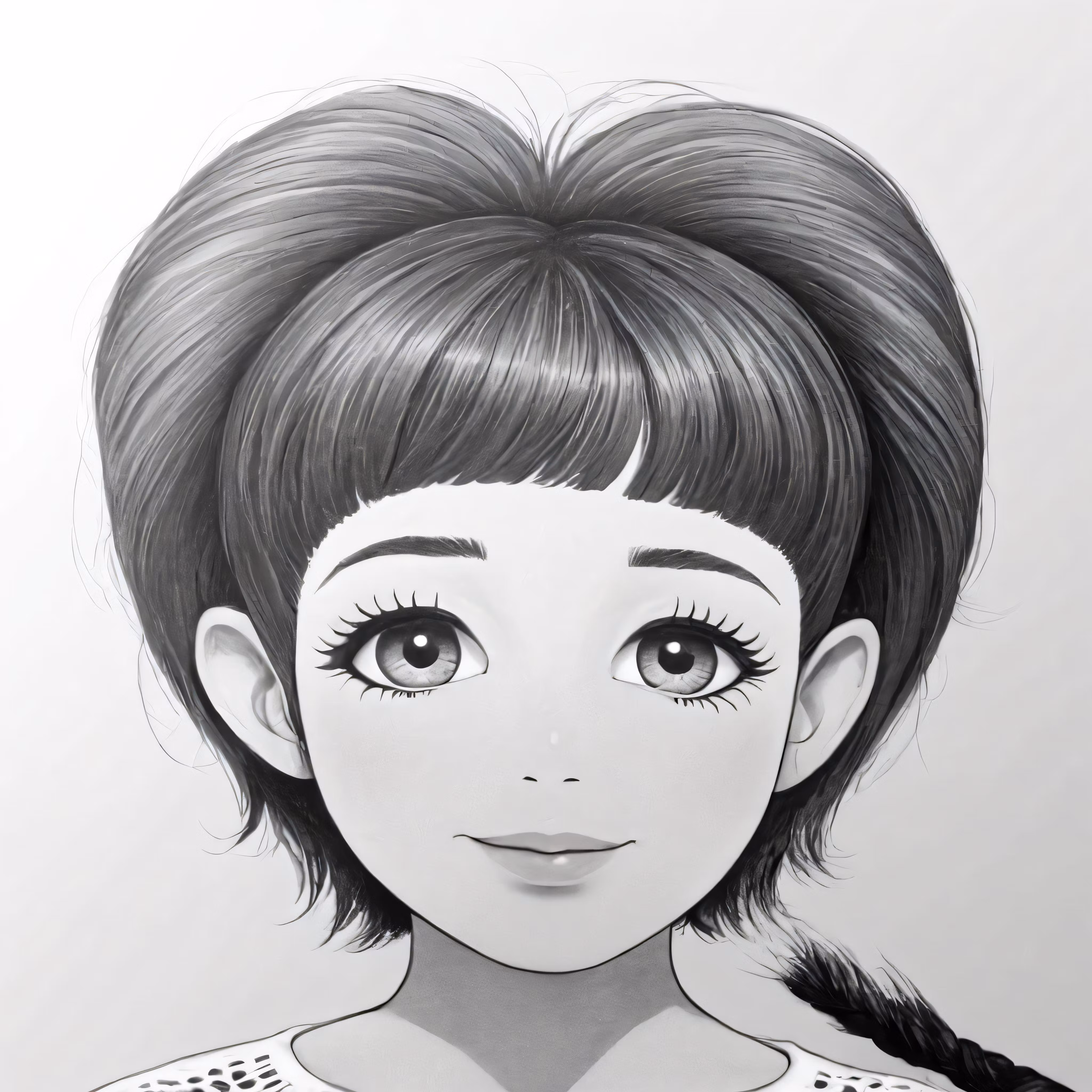 High resolution picture, free to use, an image of a cartoon girl with big eyes and hair