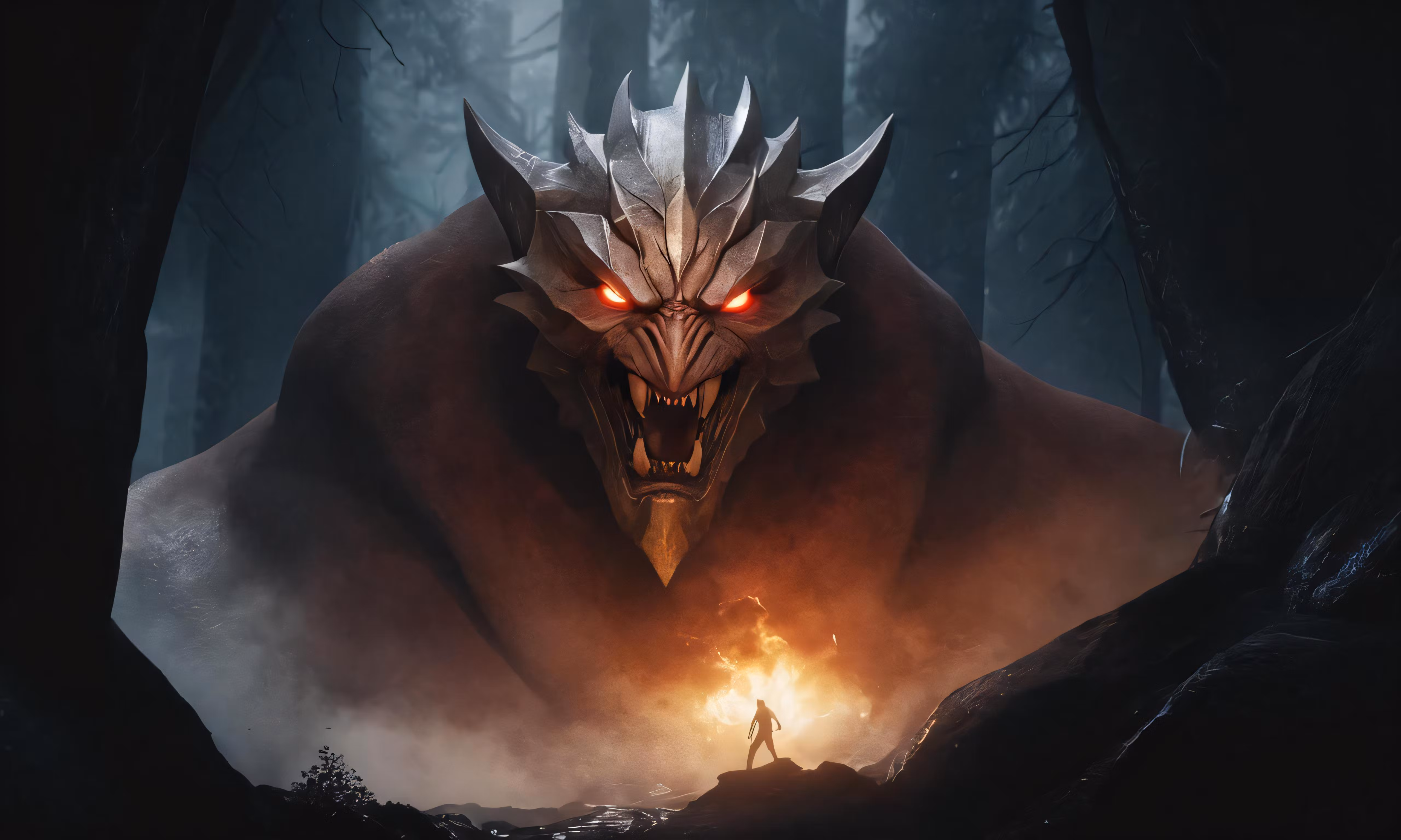 High resolution picture, free to use, an image of a demon looking at another creature