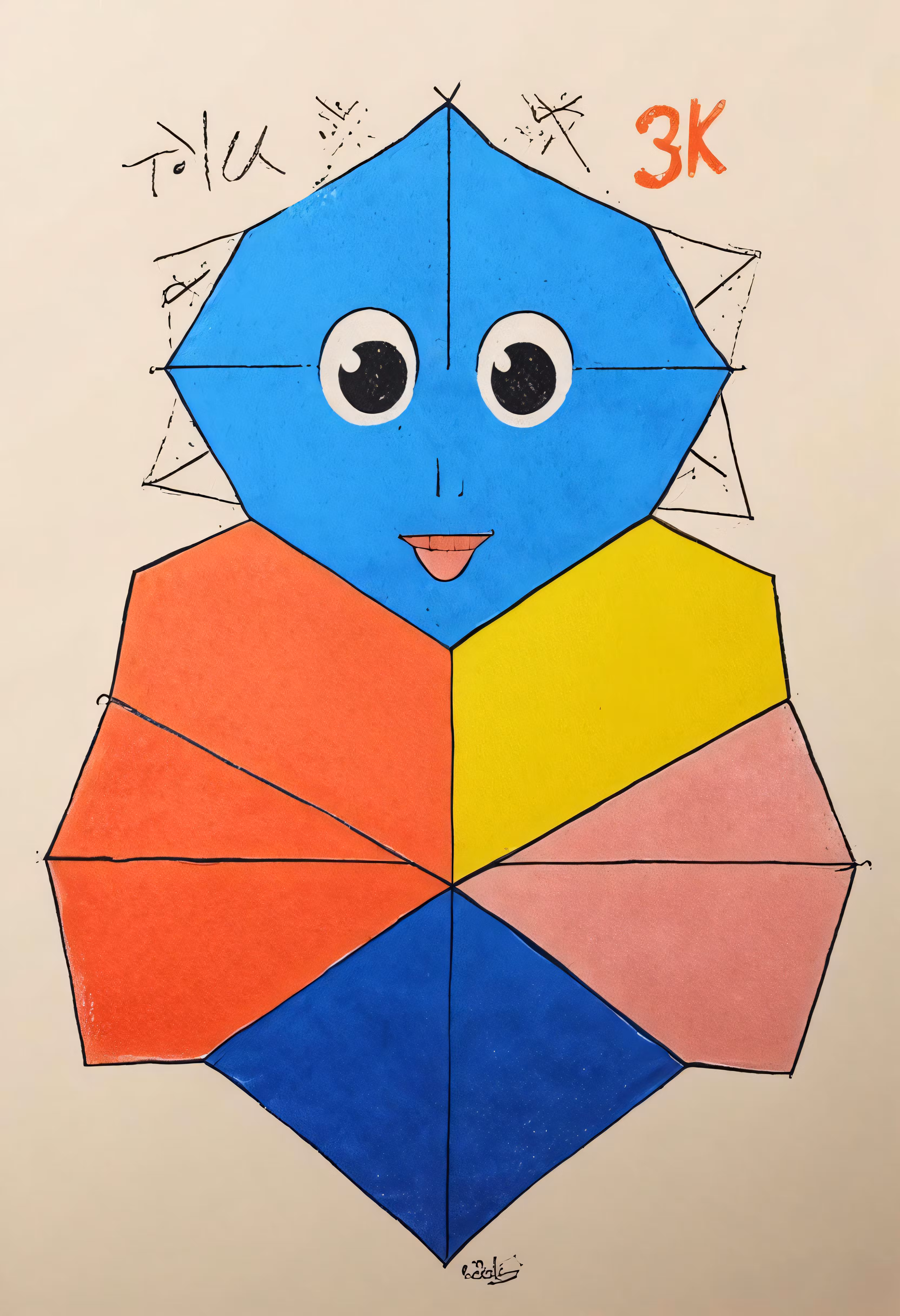 High resolution picture, free to use, an image of a drawing of a colorful face