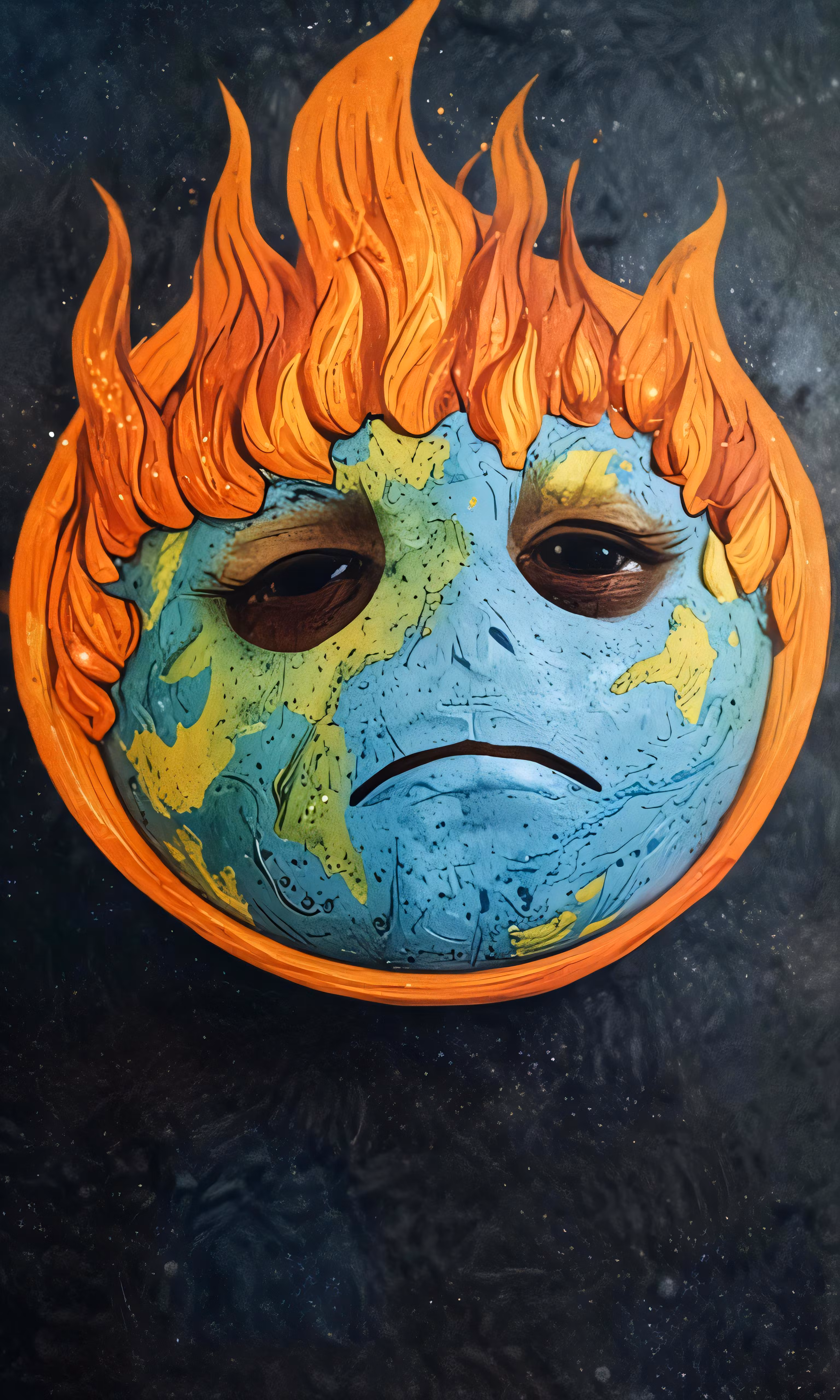 High resolution picture, free to use, an image of a face covered in fire and a gas mask