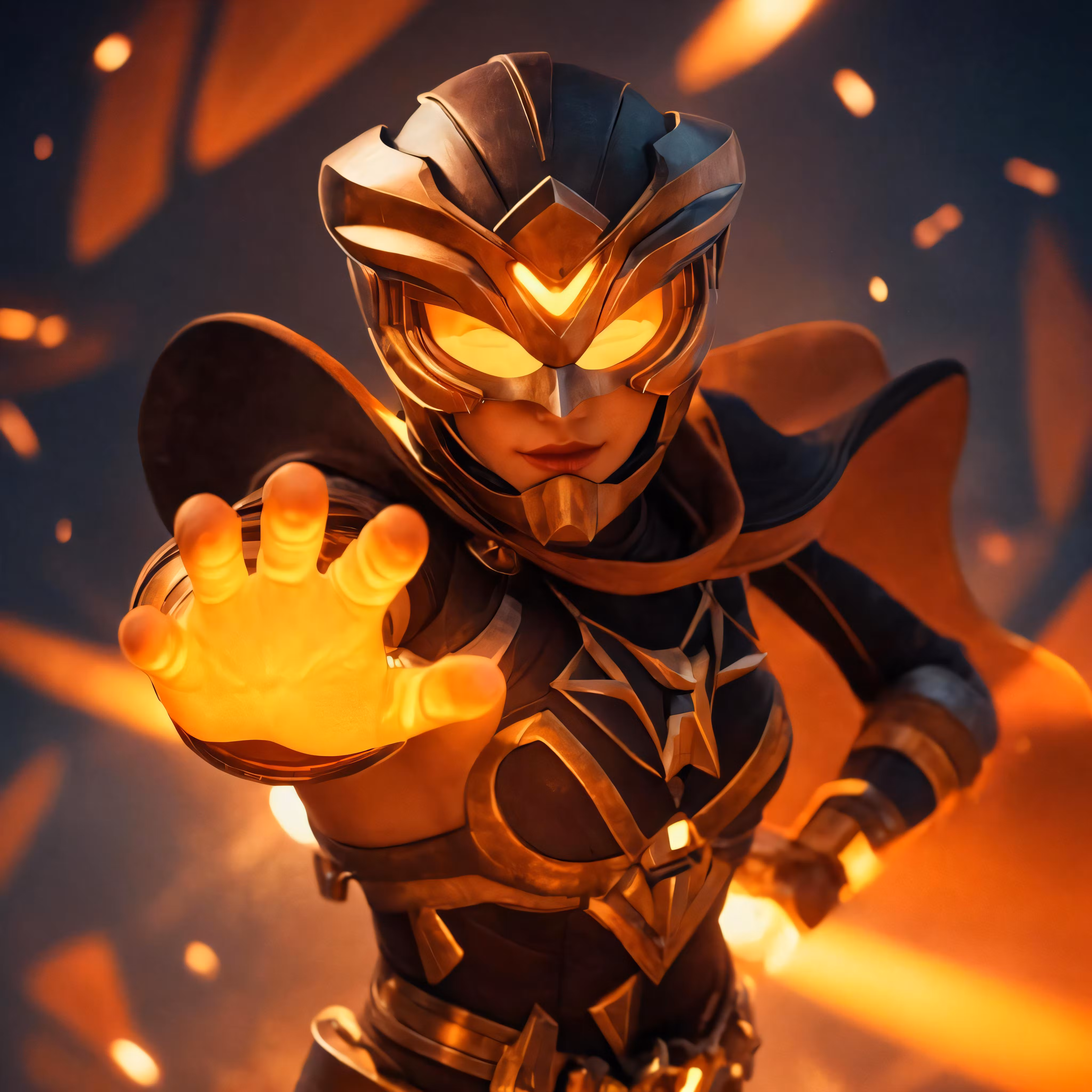 High resolution picture, free to use, an image of a female superhero holding a yellow lit light