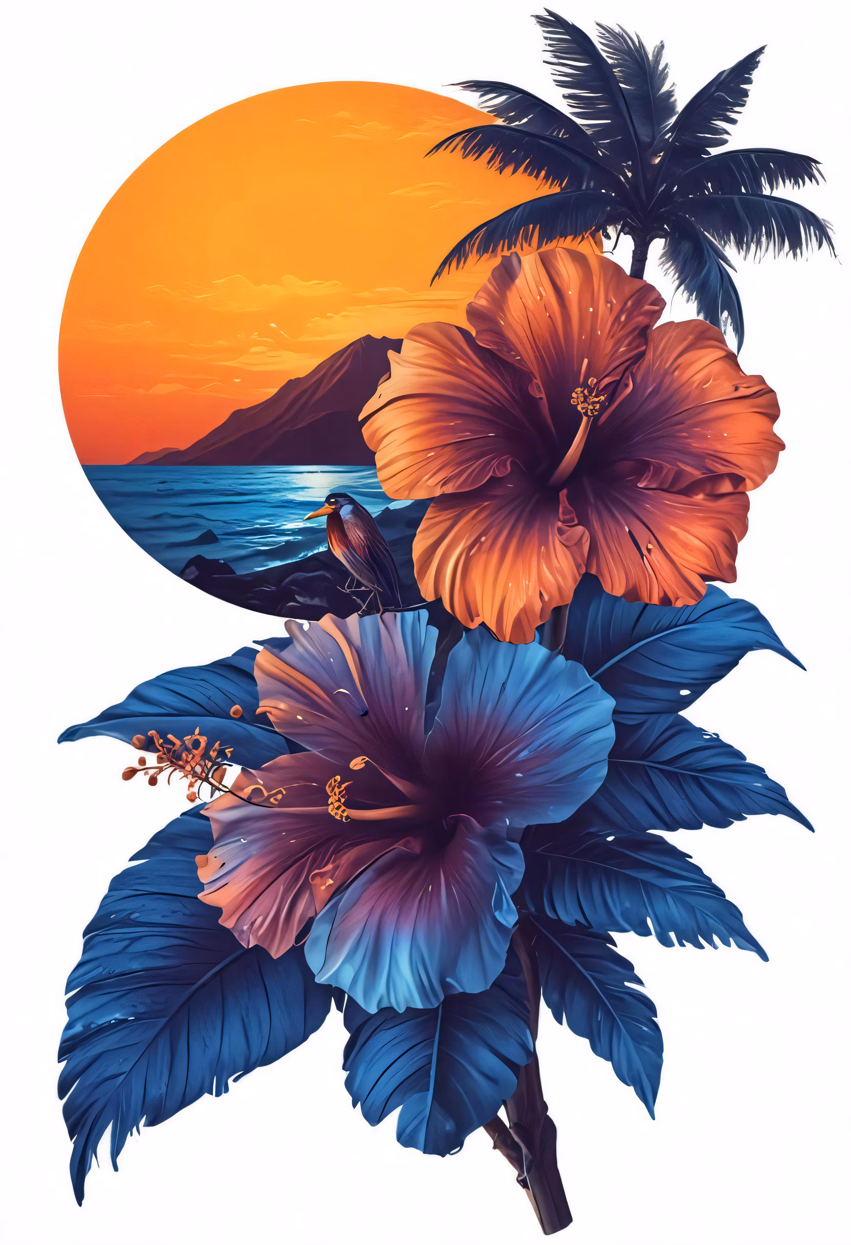 High resolution picture, free to use, an image of a flower and palm trees