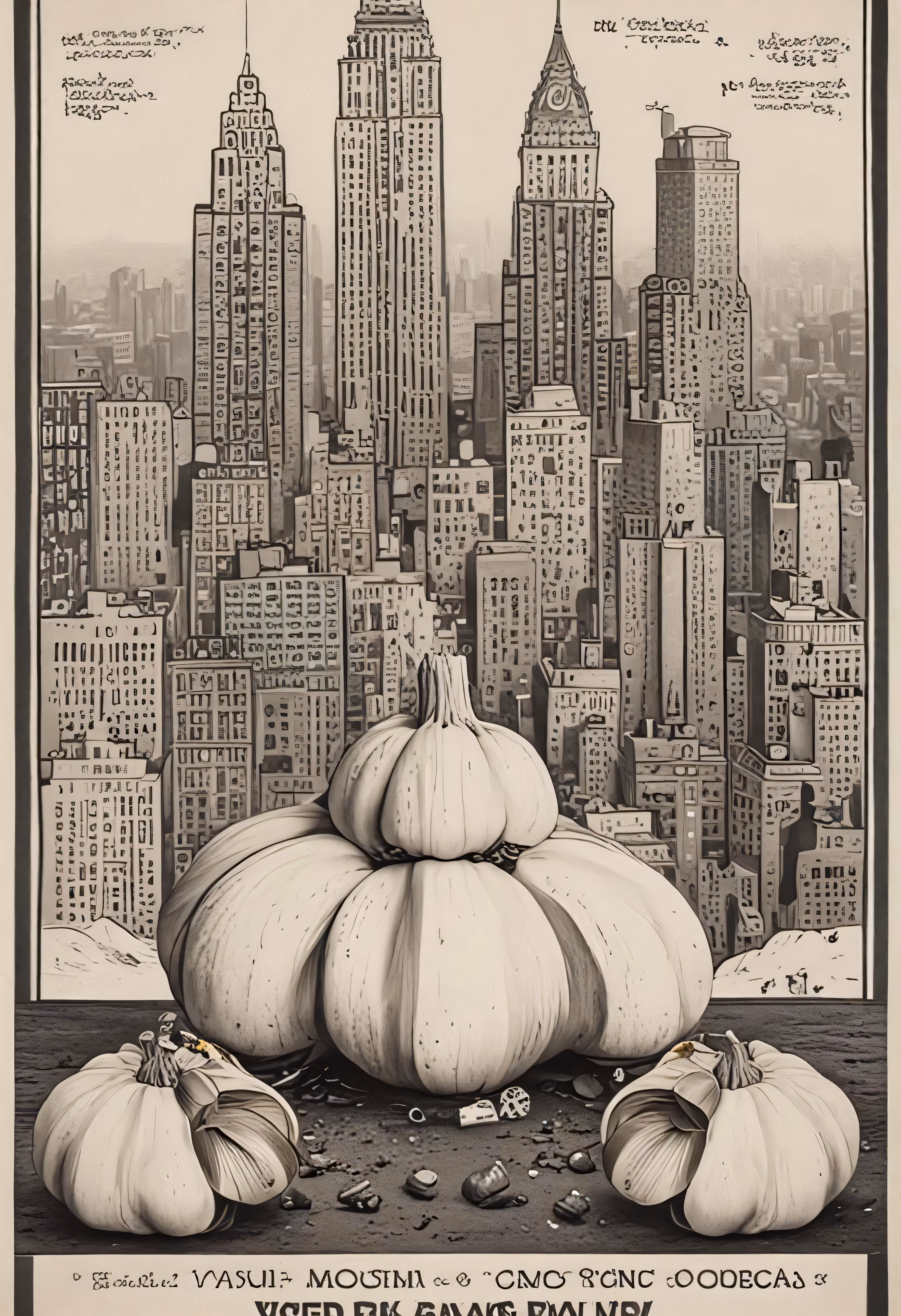 High resolution picture, free to use, an image of a giant pumpkins in the city