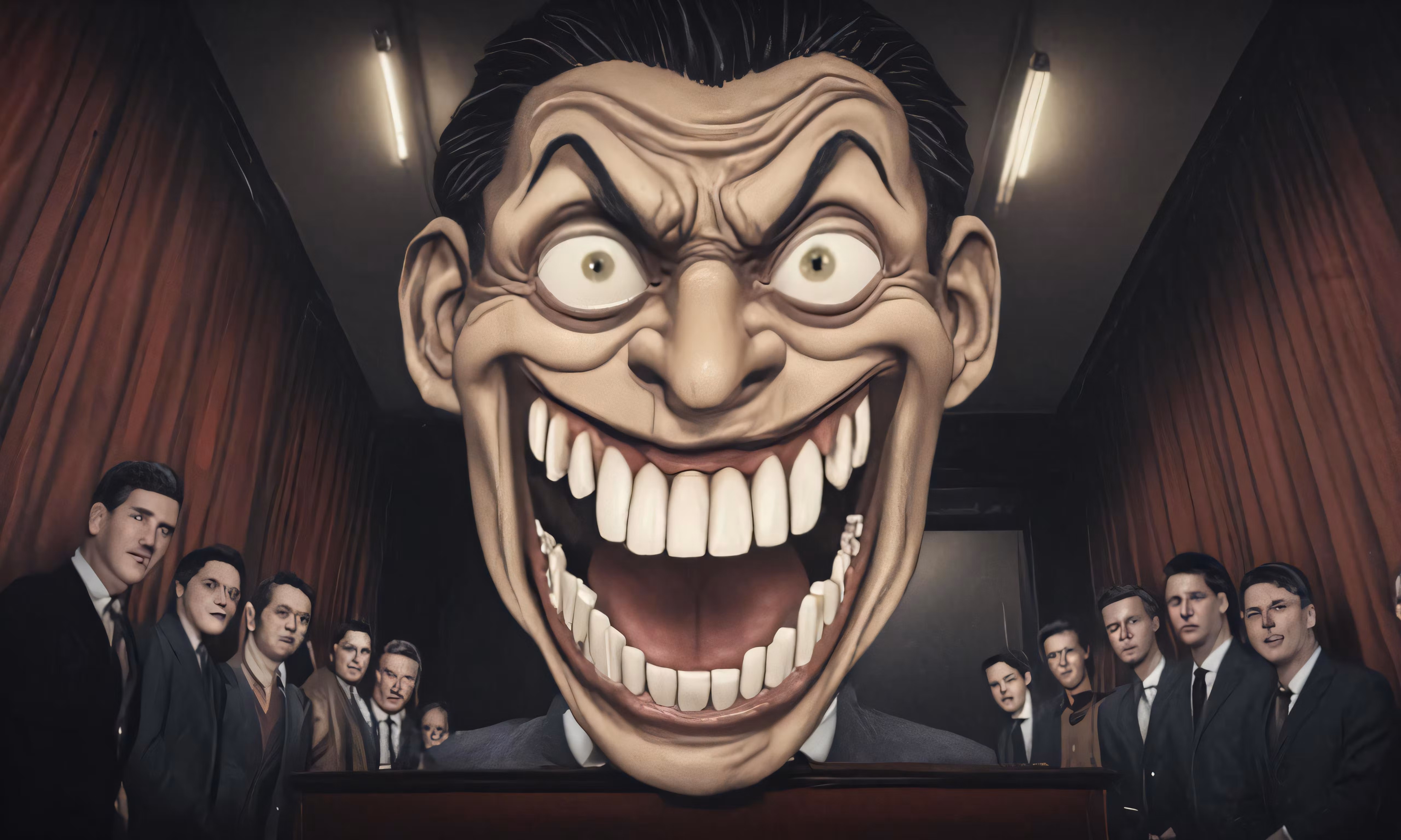 High resolution picture, free to use, an image of a group of men wearing scary clown masks