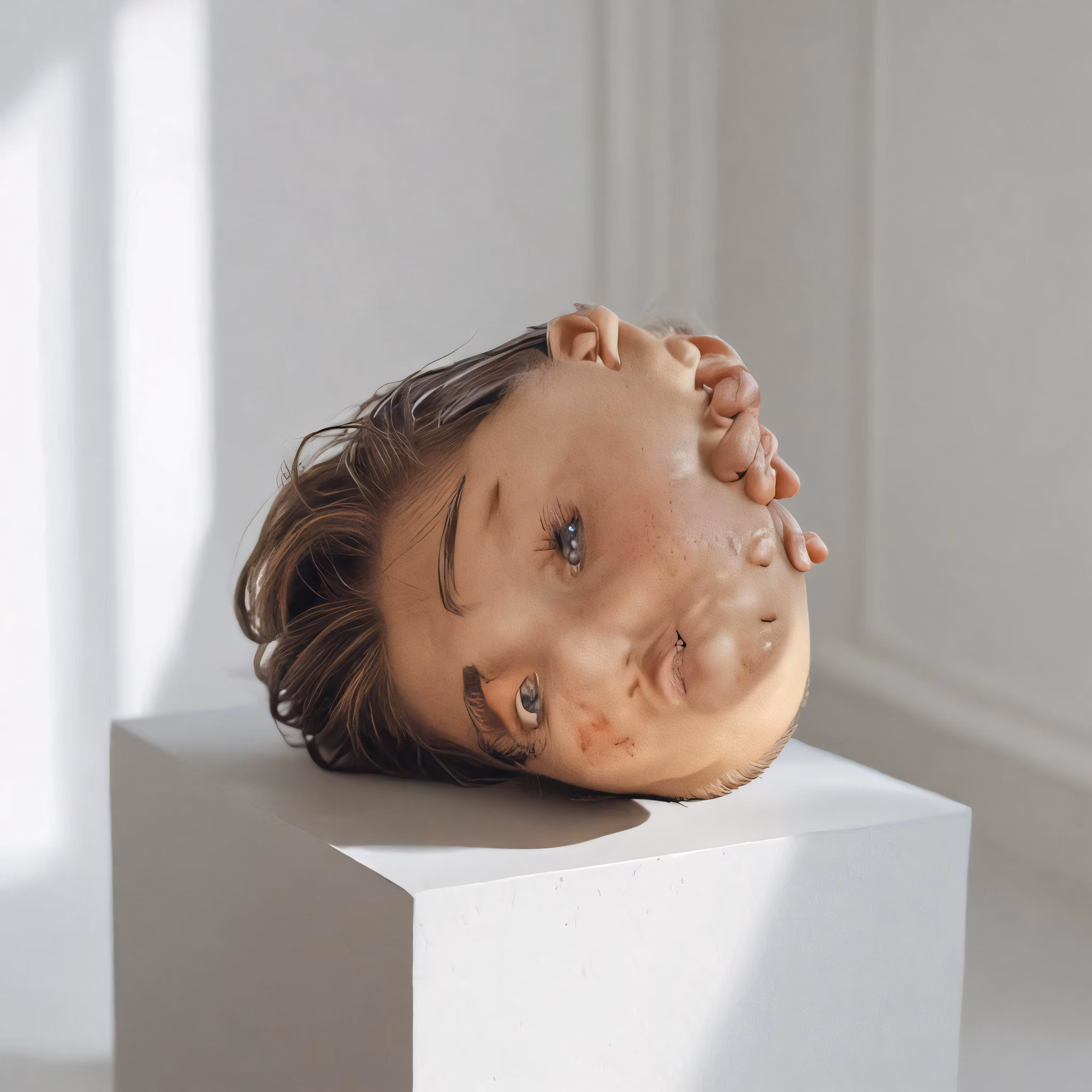 High resolution picture, free to use, an image of a head laying on top of a white piece