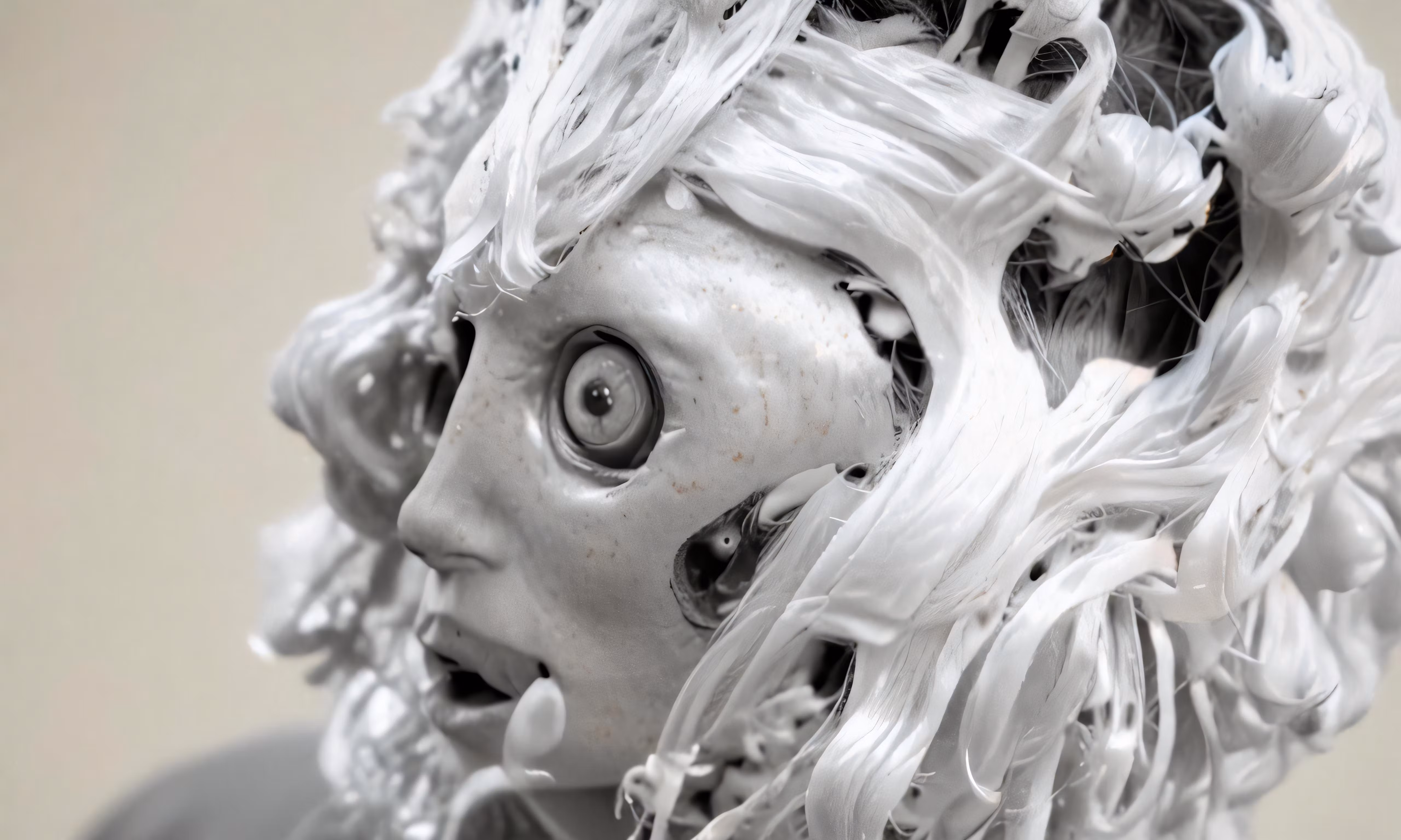 High resolution picture, free to use, an image of a head statue made of hair and strings