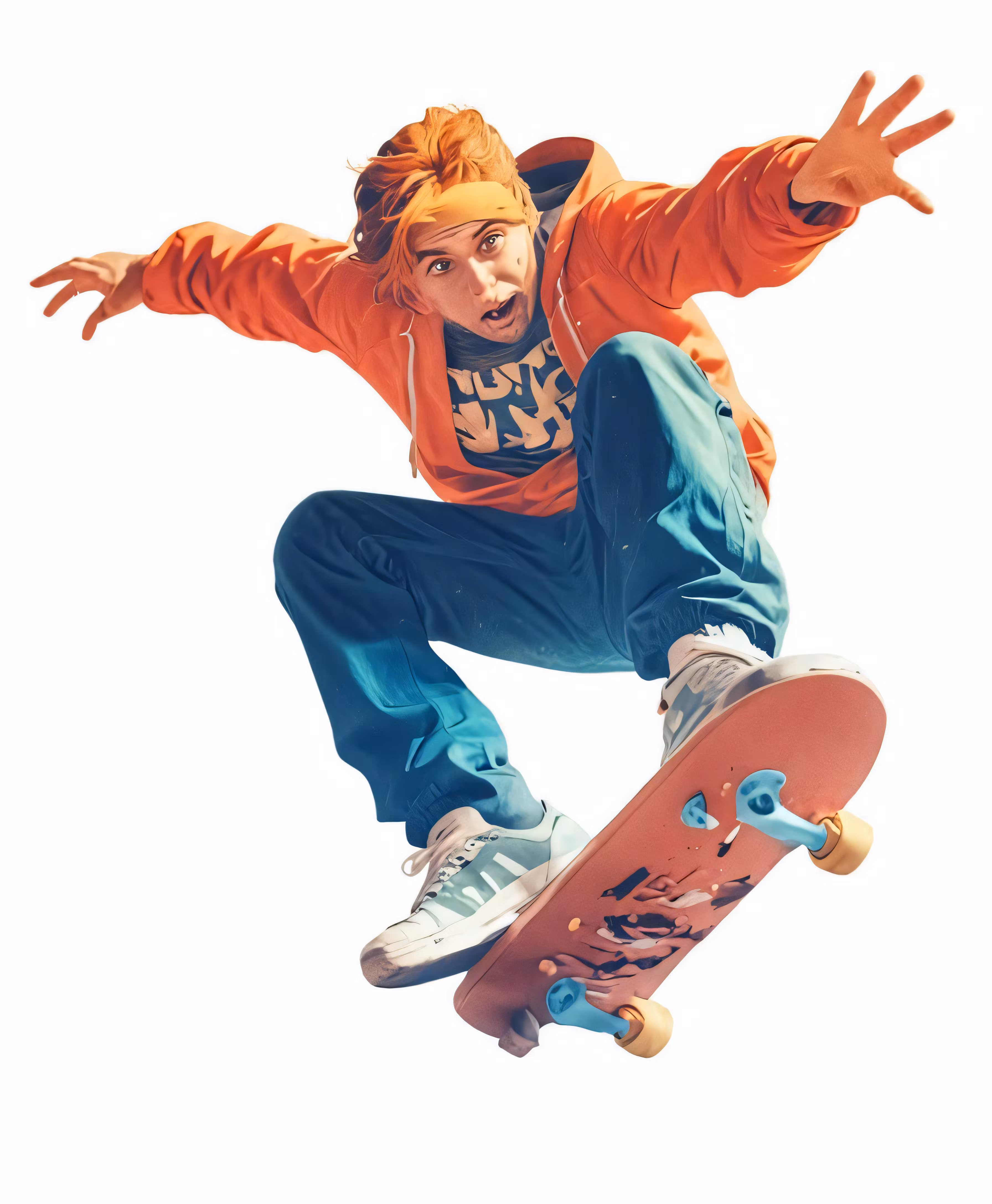 High resolution picture, free to use, an image of a kid on a skateboard in the air