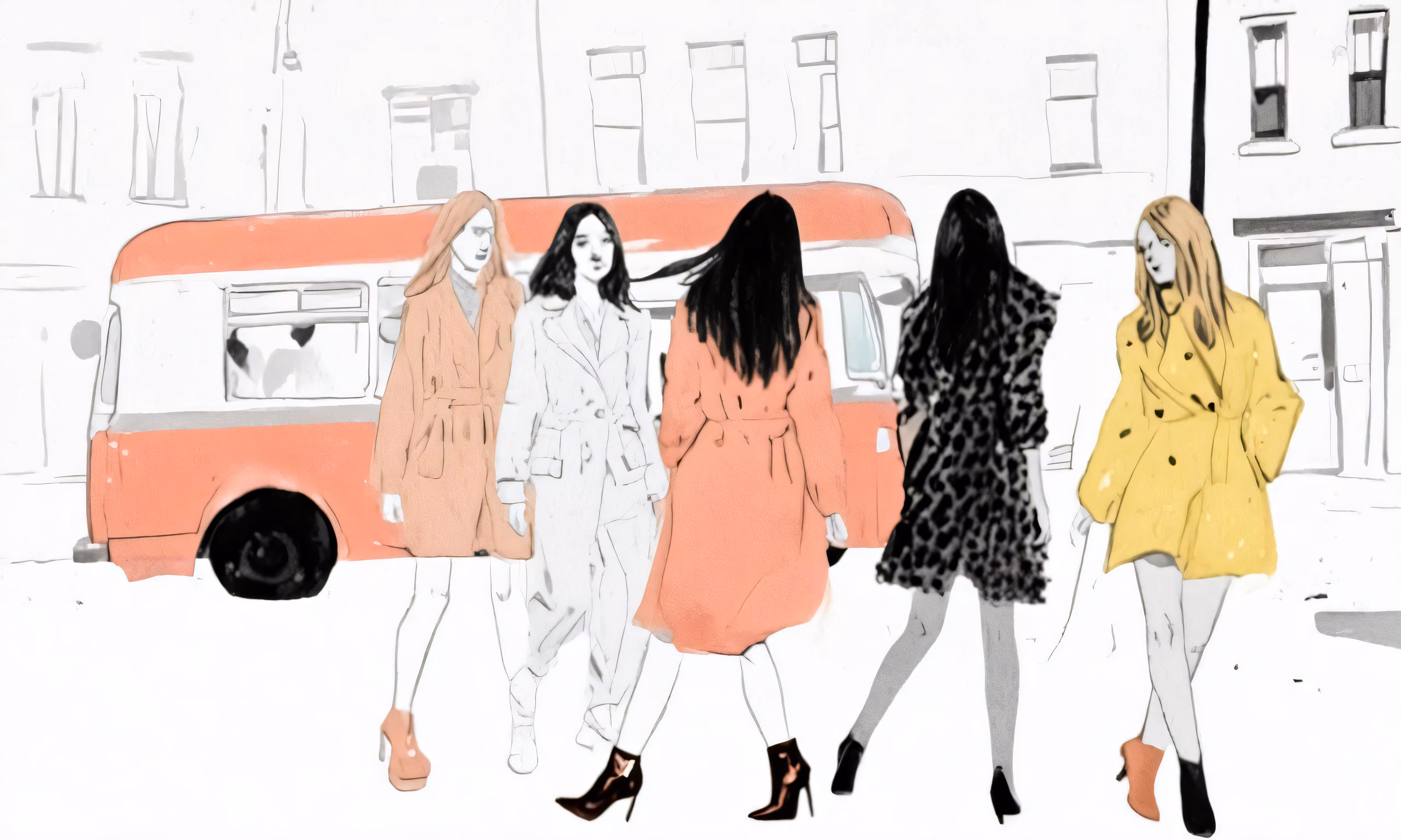 High resolution picture, free to use, an image of a line of women walking on the street