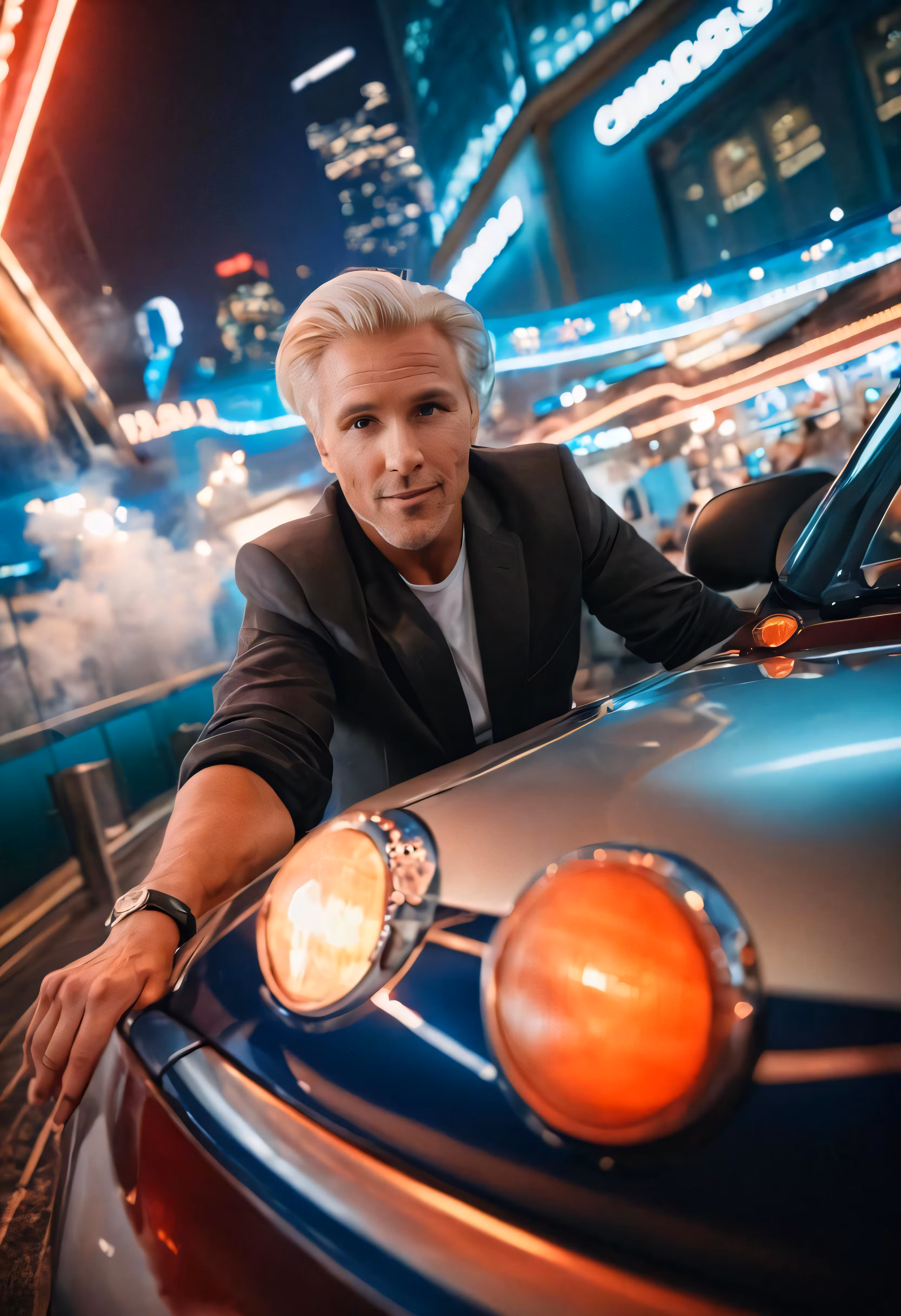 High resolution picture, free to use, an image of a man sitting on the hood of a car