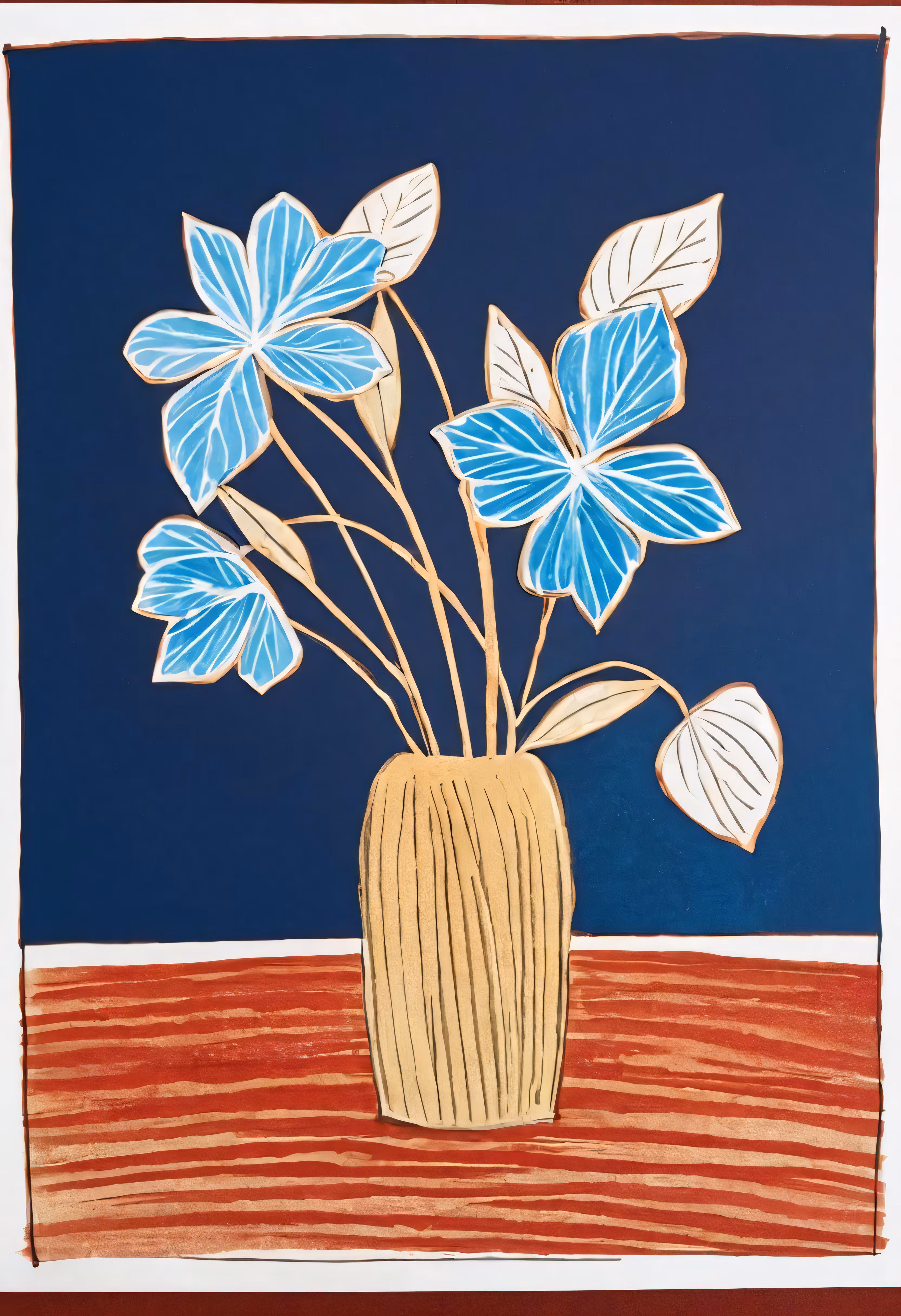 High resolution picture, free to use, an image of a painting of blue flowers in a vase