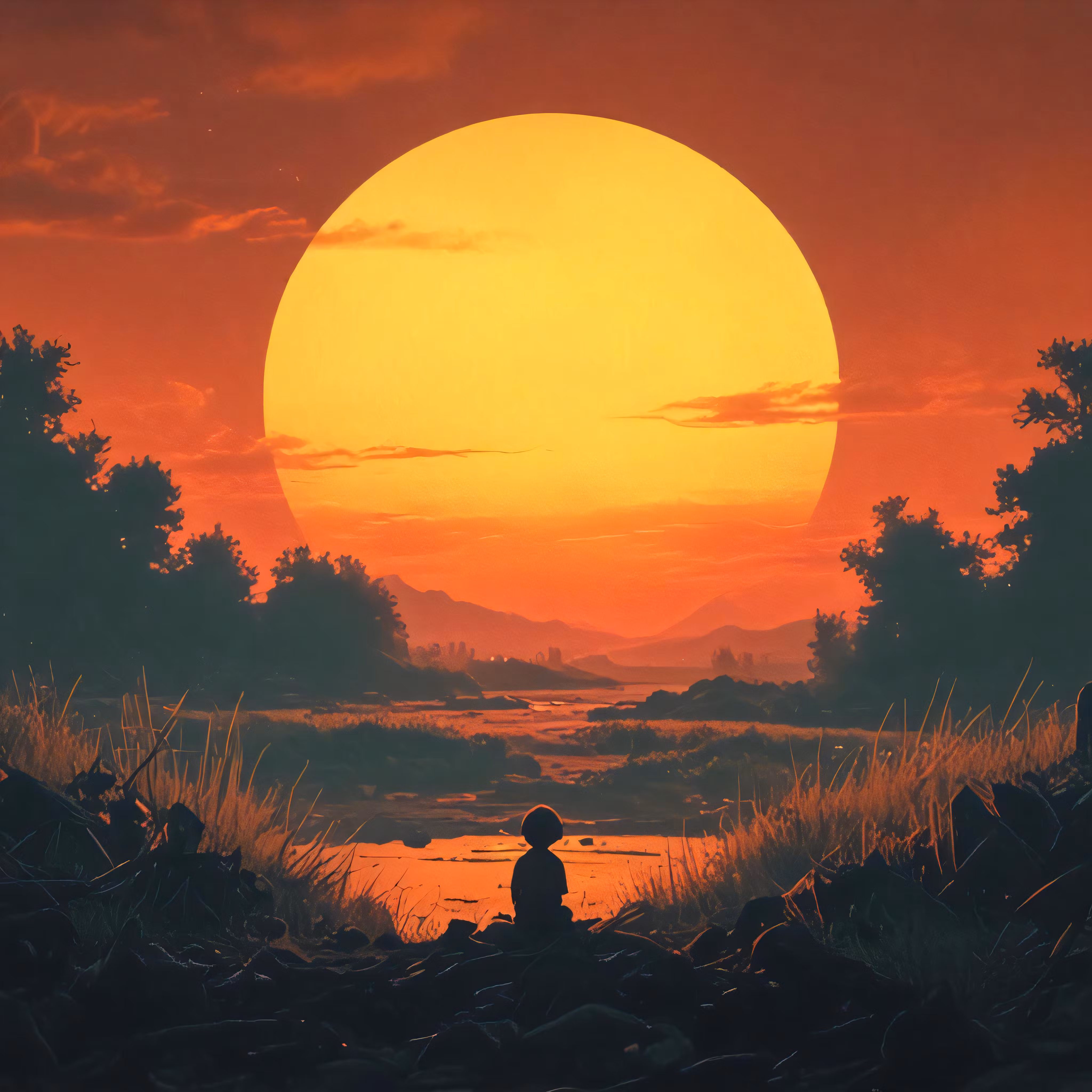 High resolution picture, free to use, an image of a person with a sunset in the background