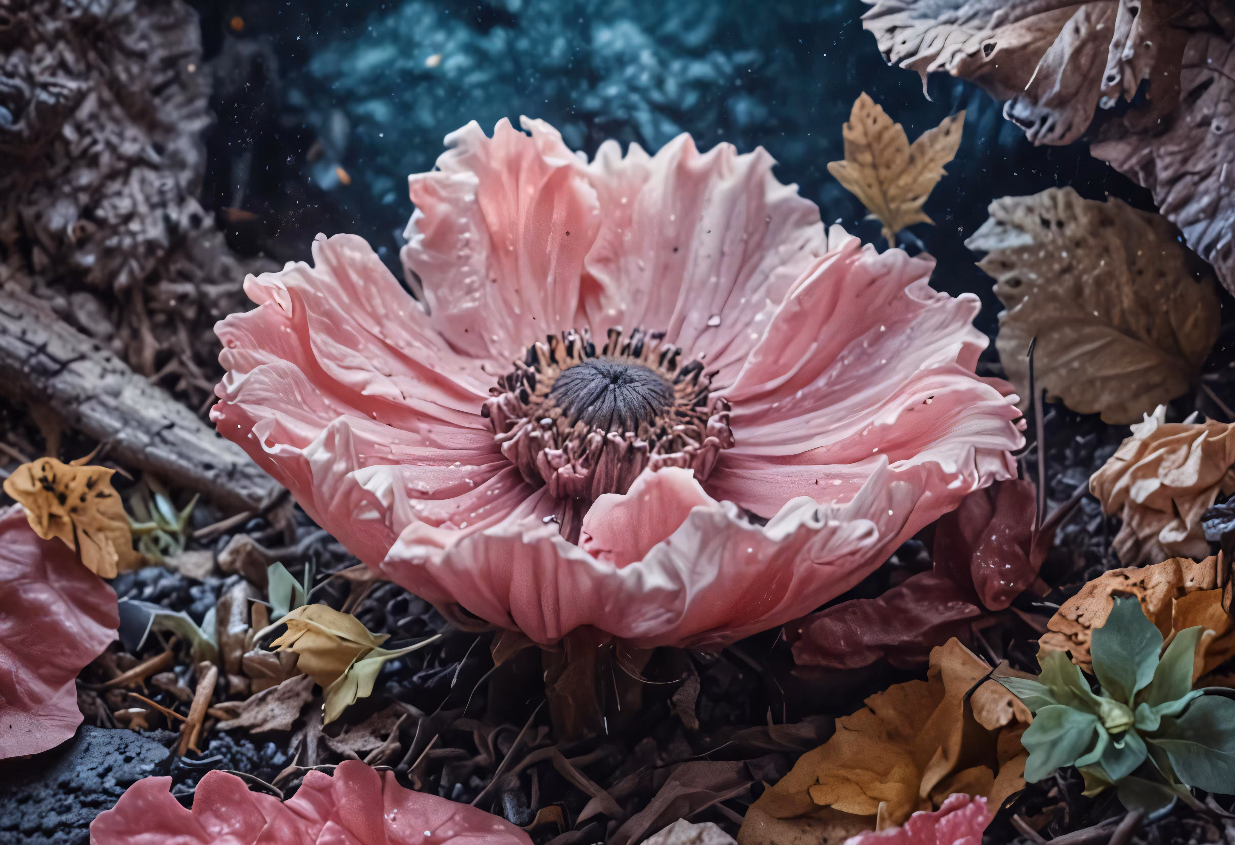 High resolution picture, free to use, an image of a pink flower with drops of water