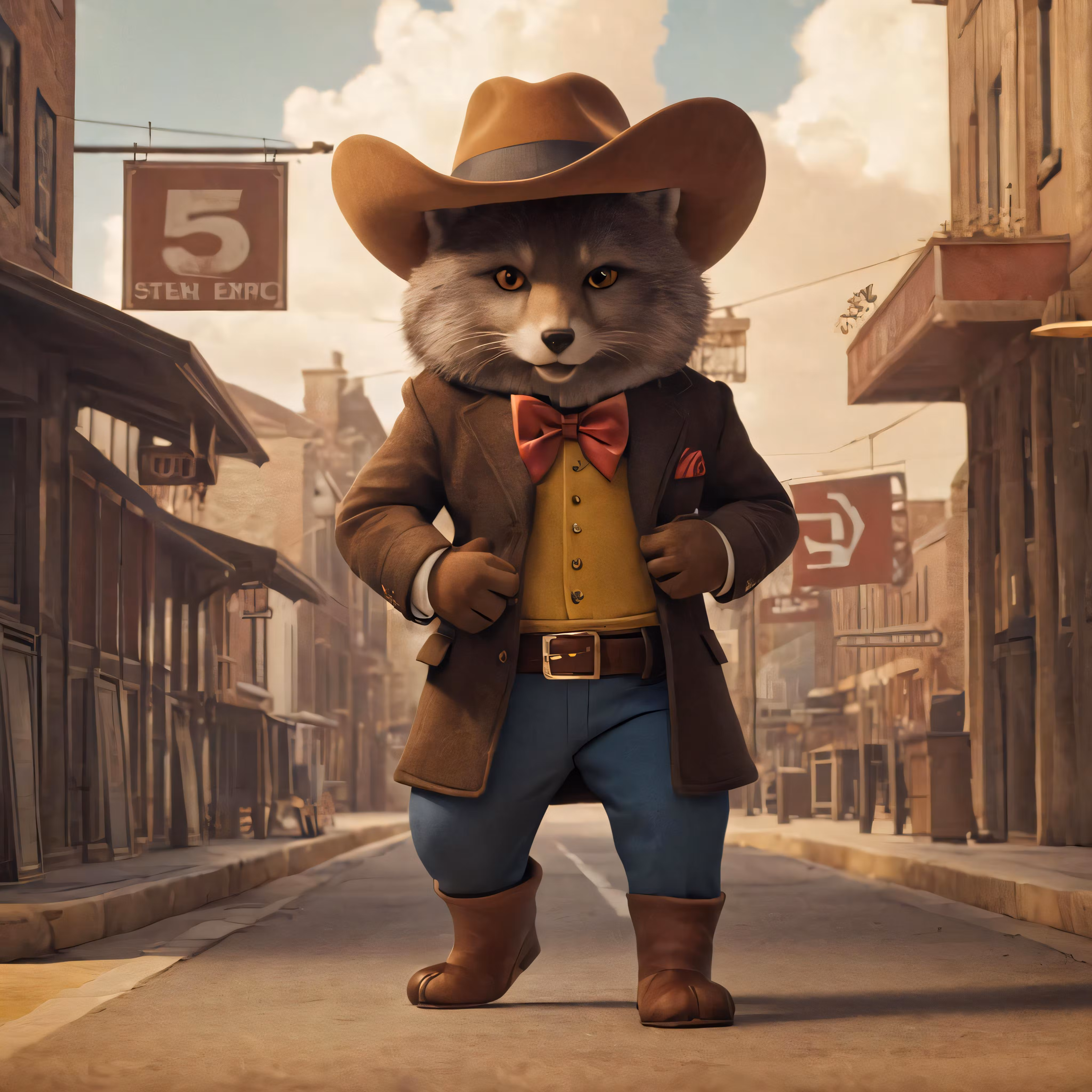 High resolution picture, free to use, an image of a racoon with cowboy outfit and hat