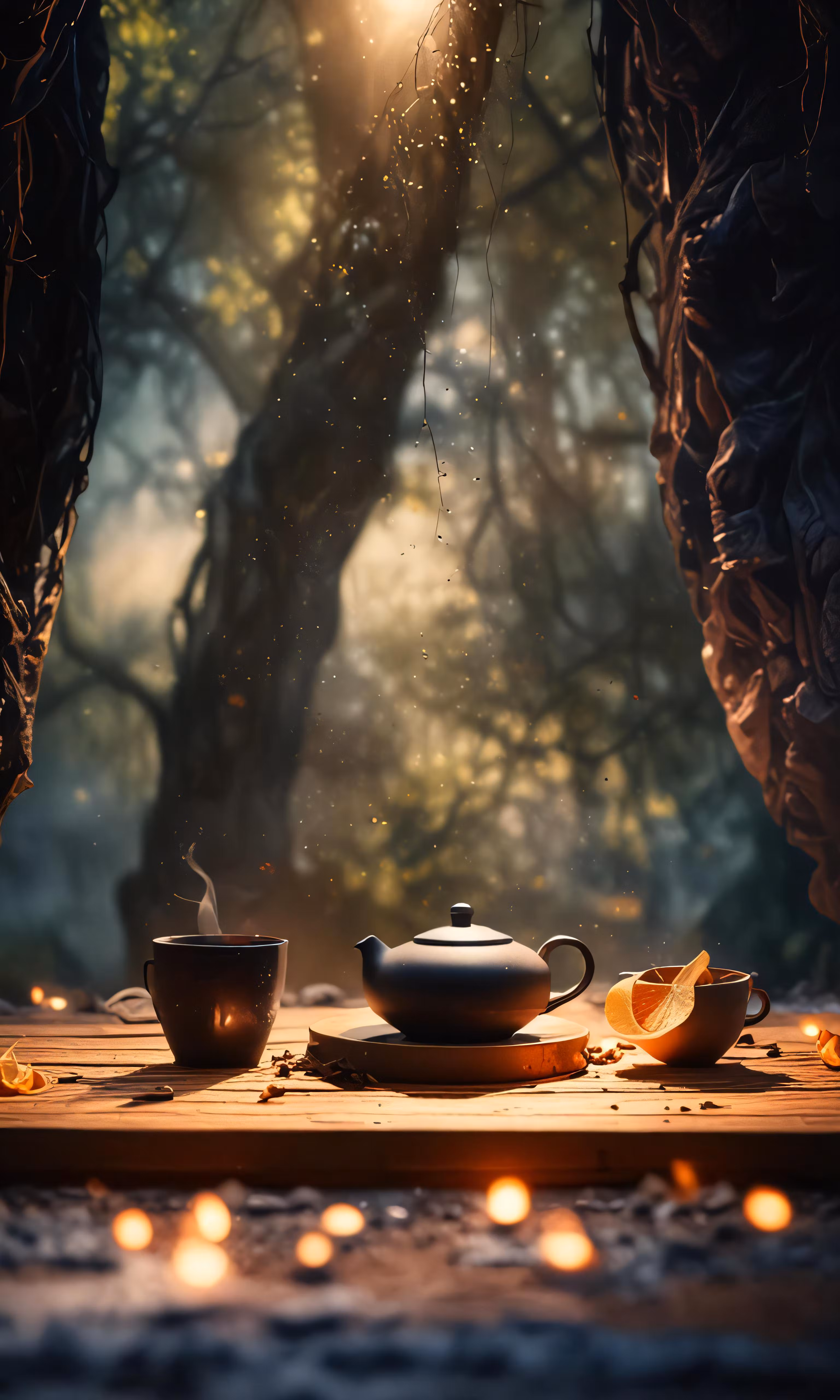High resolution picture, free to use, an image of a tea set with a candle coming out of the hole