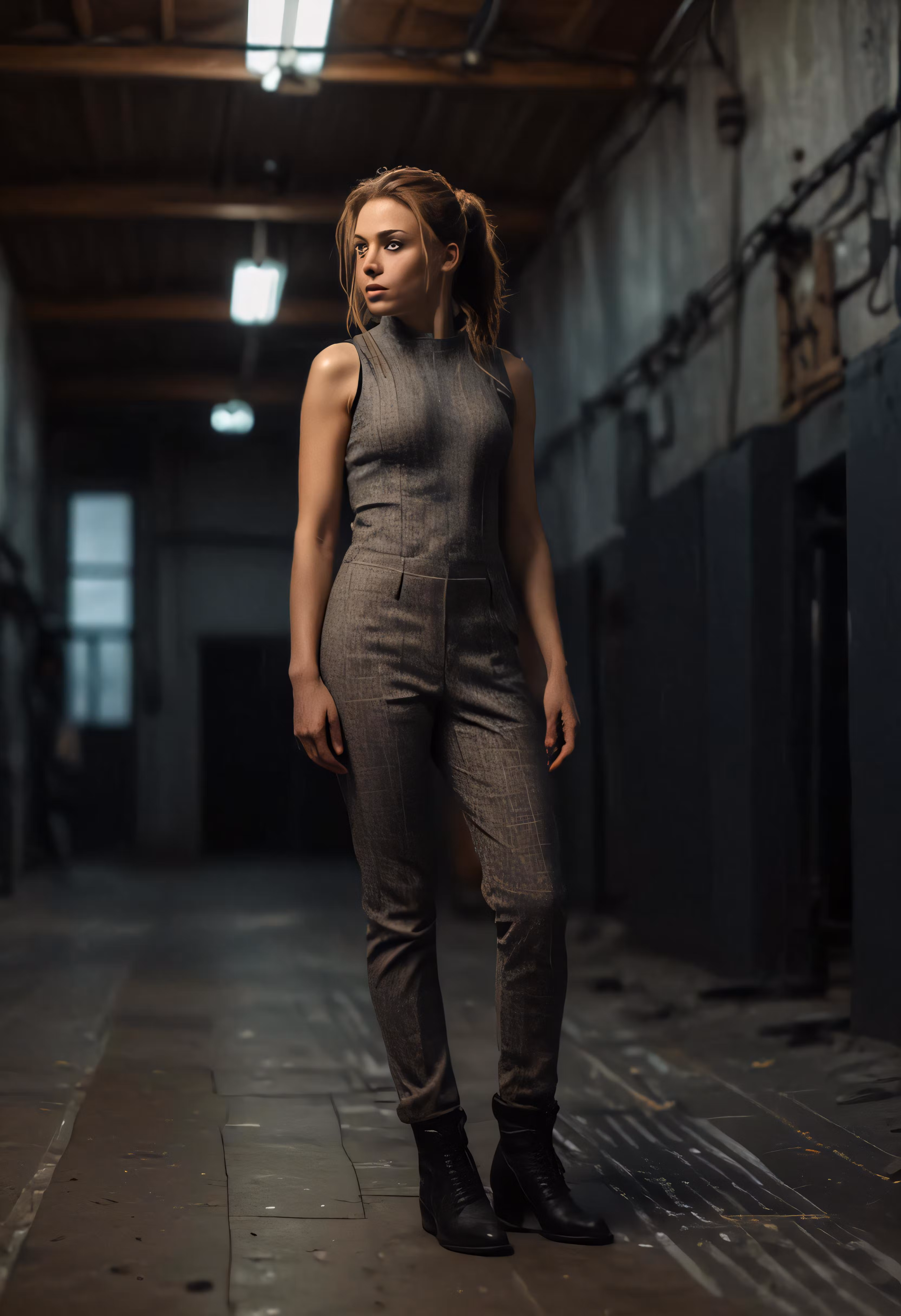 High resolution picture, free to use, an image of a woman standing alone in the middle of an alley way