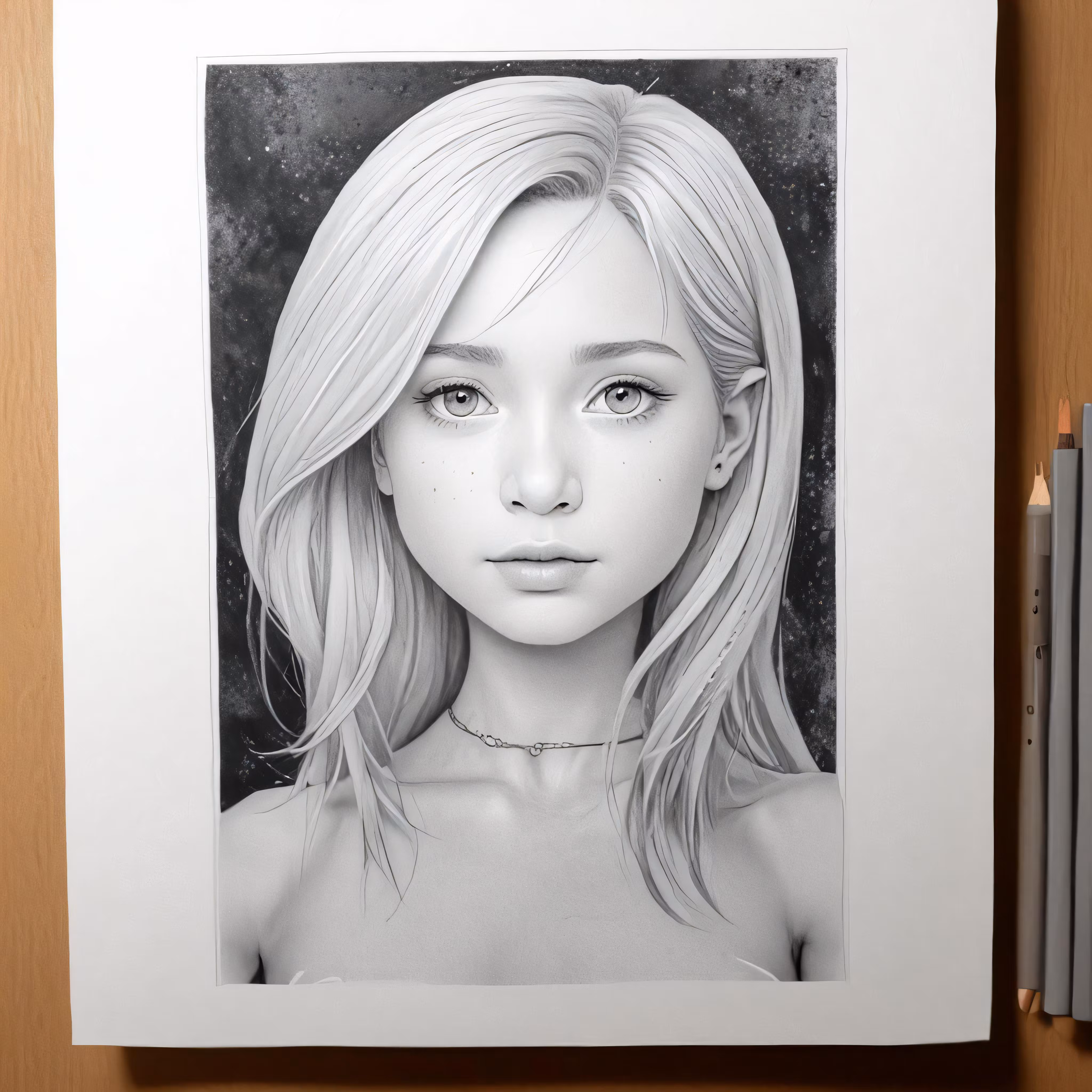 High resolution picture, free to use, an image of a woman that has a pencil drawing