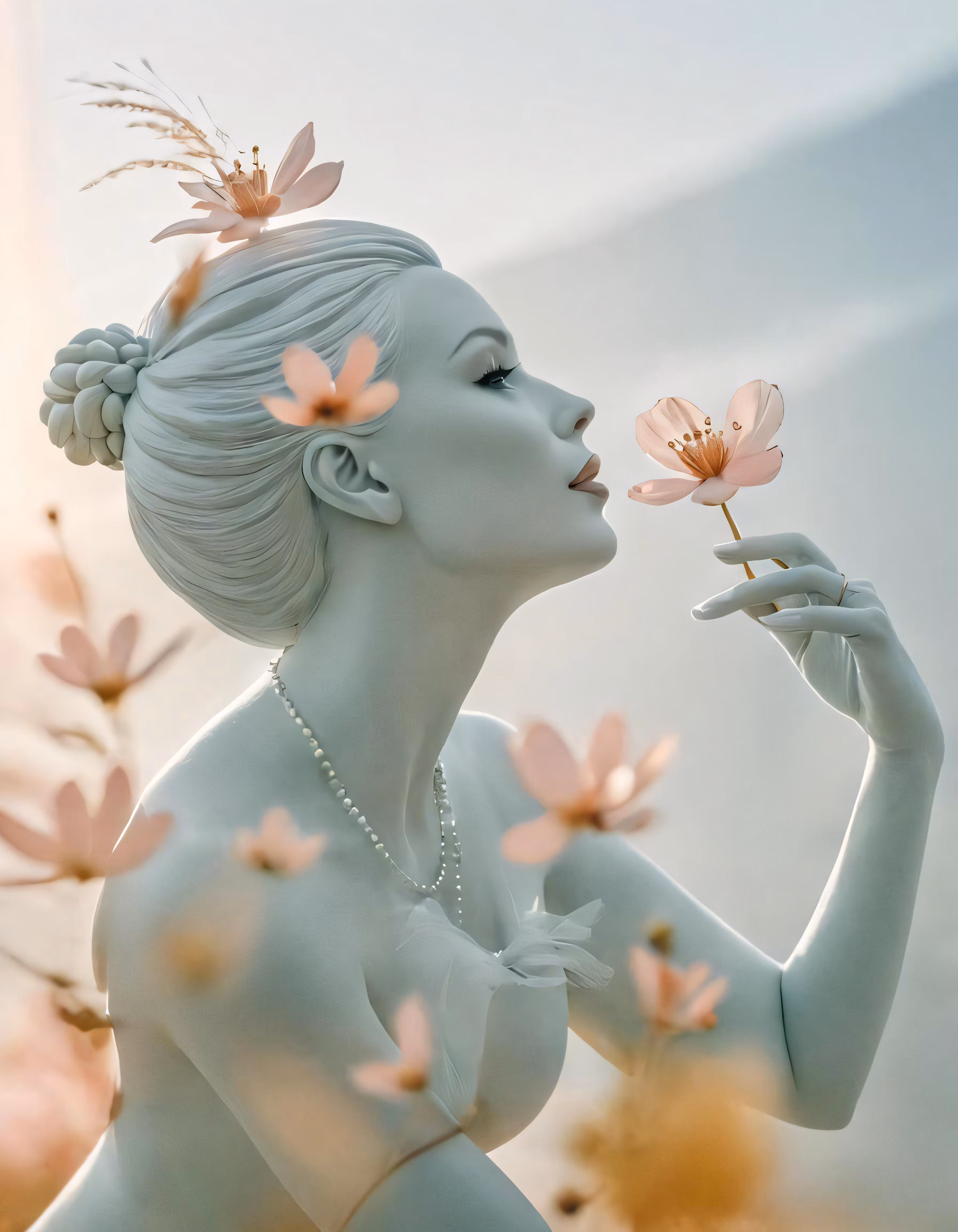 High resolution picture, free to use, an image of a woman with flowers in her hair