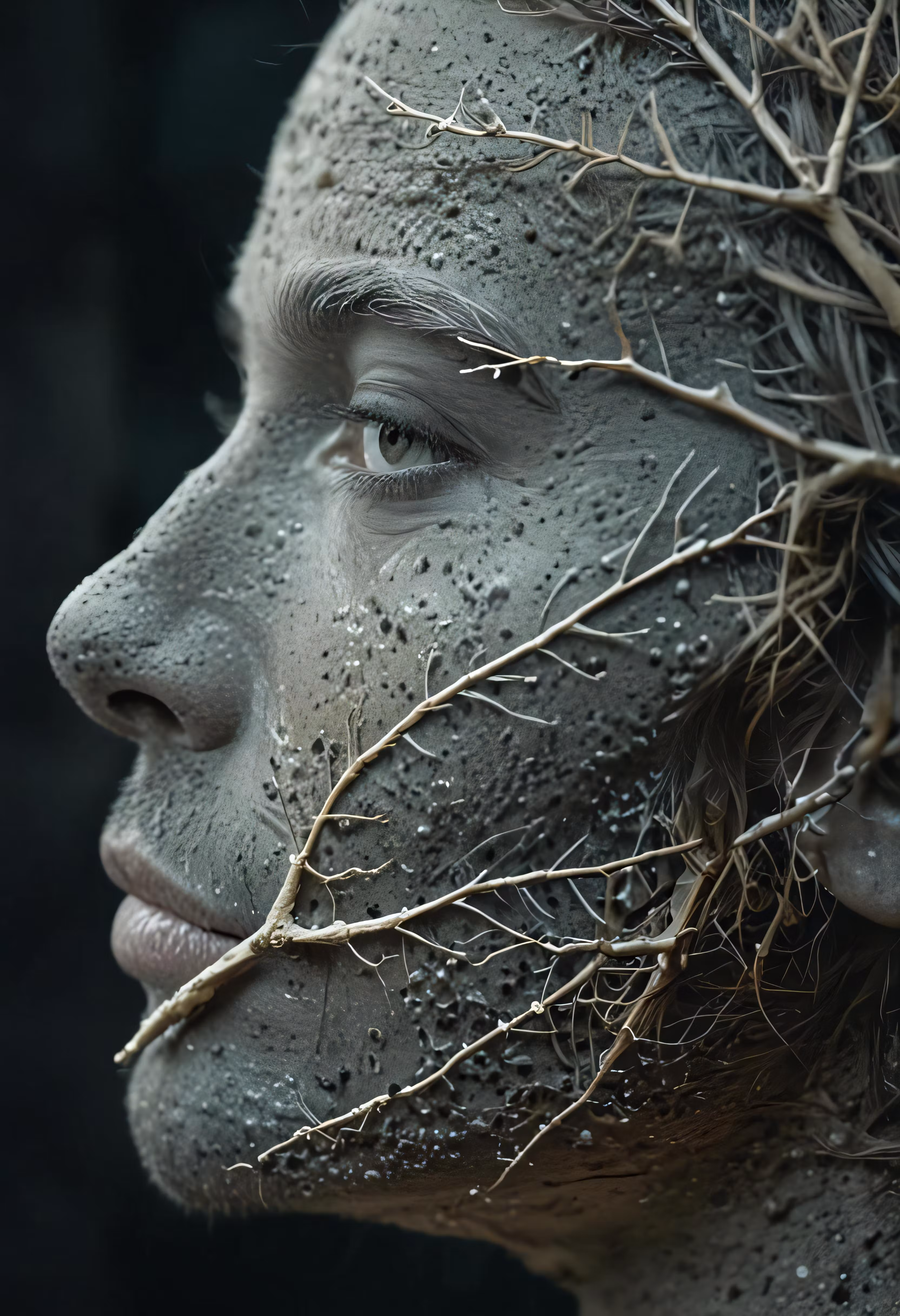 High resolution picture, free to use, an image of a woman with plants all over her face