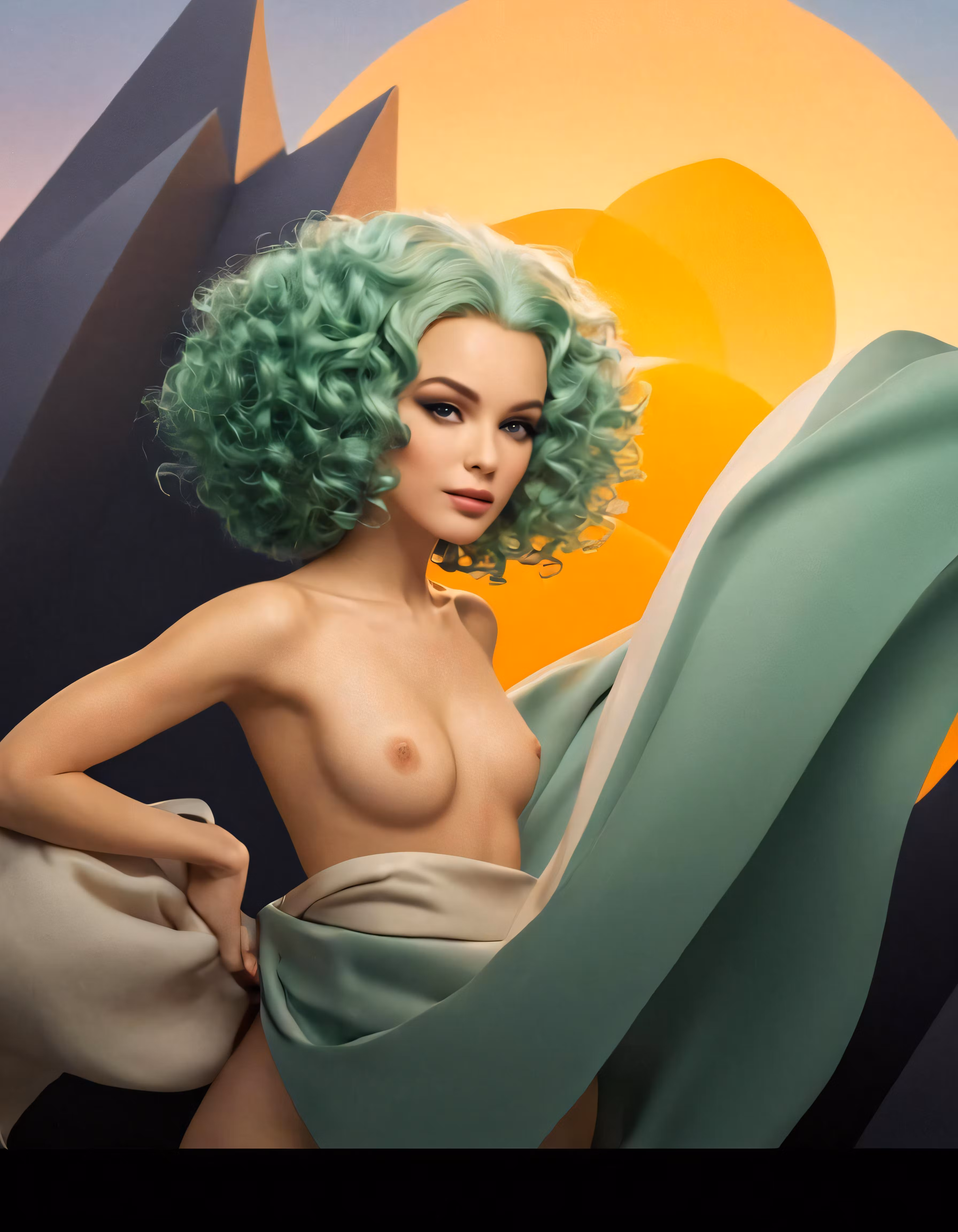 High resolution picture, free to use, an image of a young lady with green hair