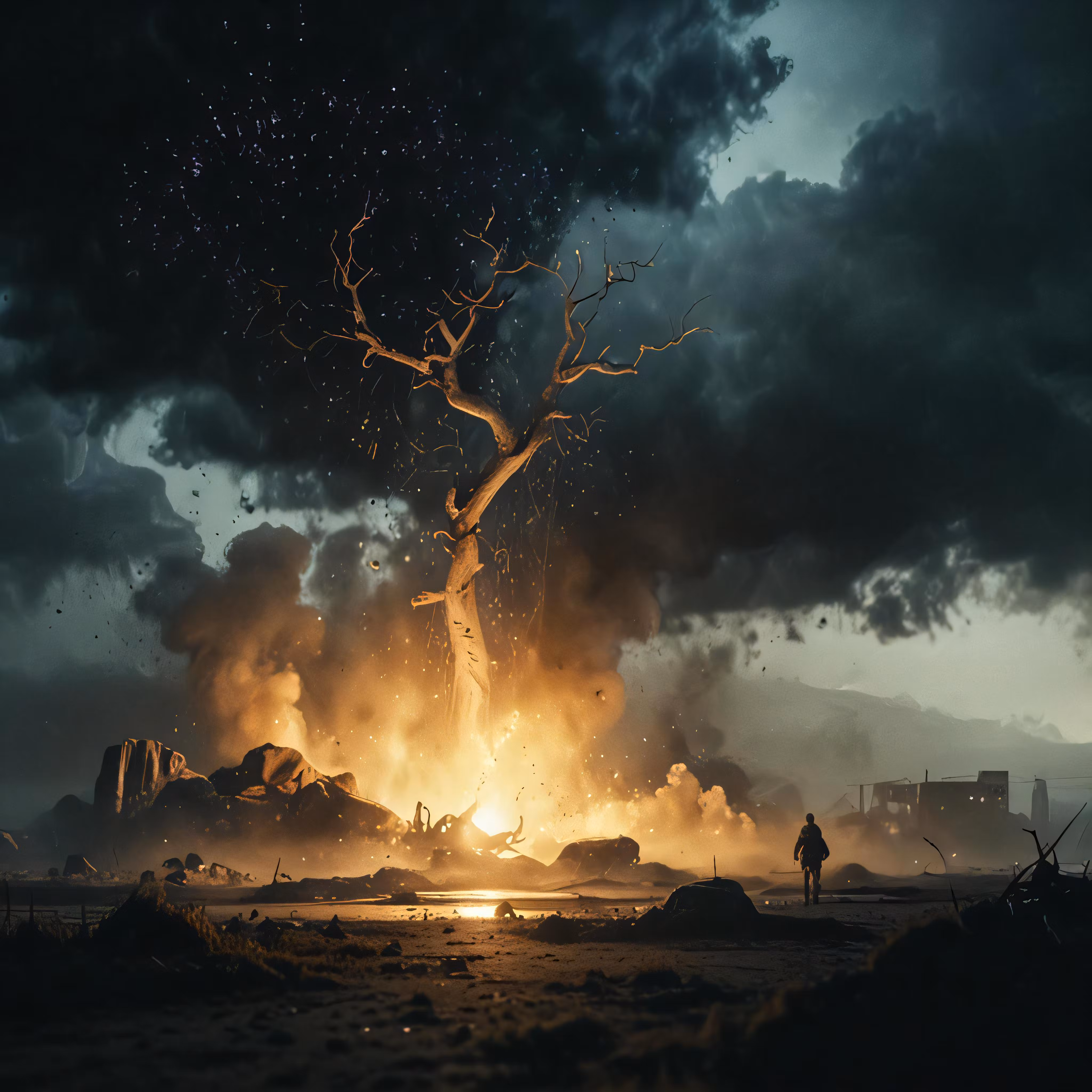 High resolution picture, free to use, an image of an outdoor area with a lot of smoke and dirt