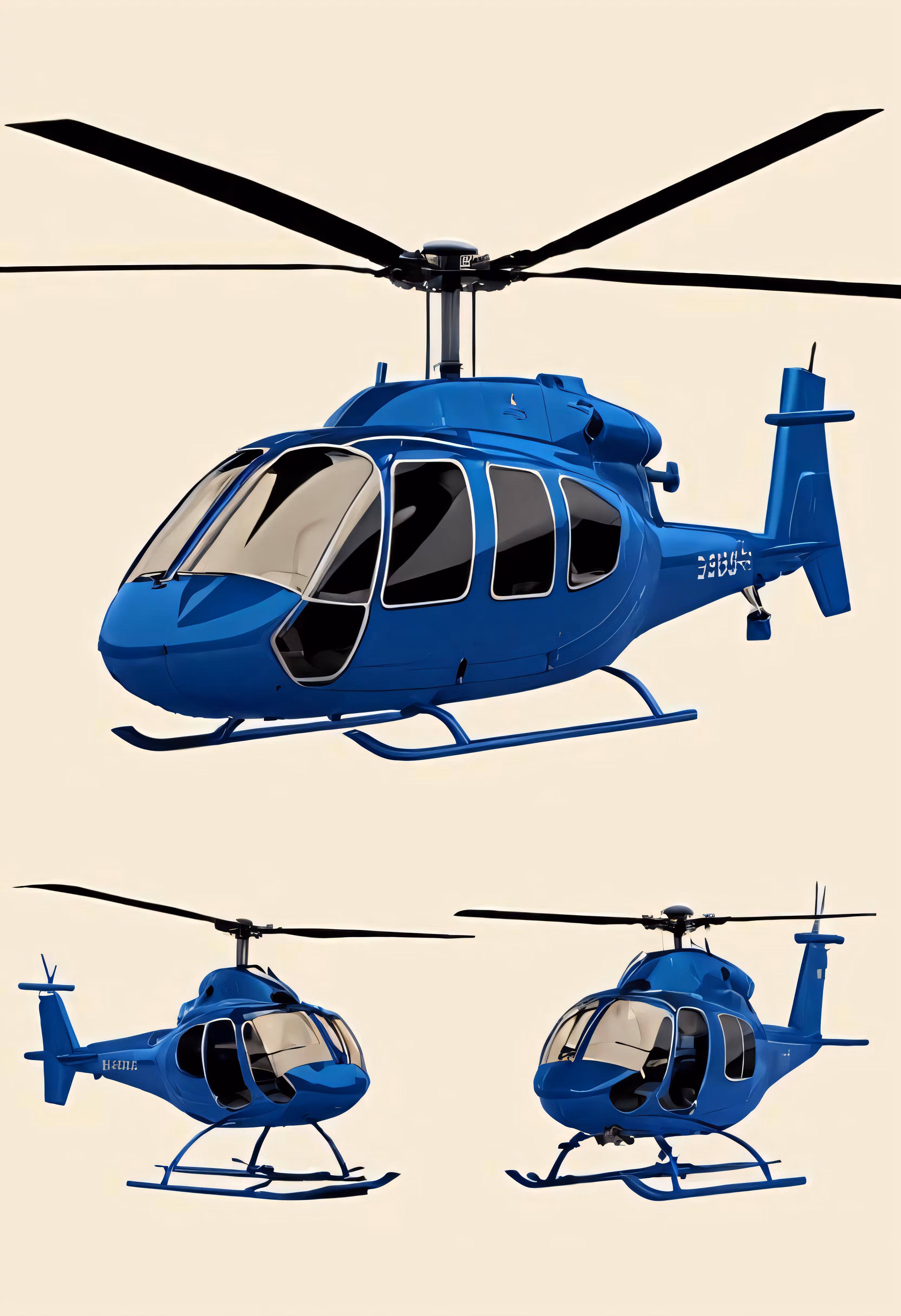 High resolution picture, free to use, an image of blue helicopter with four views