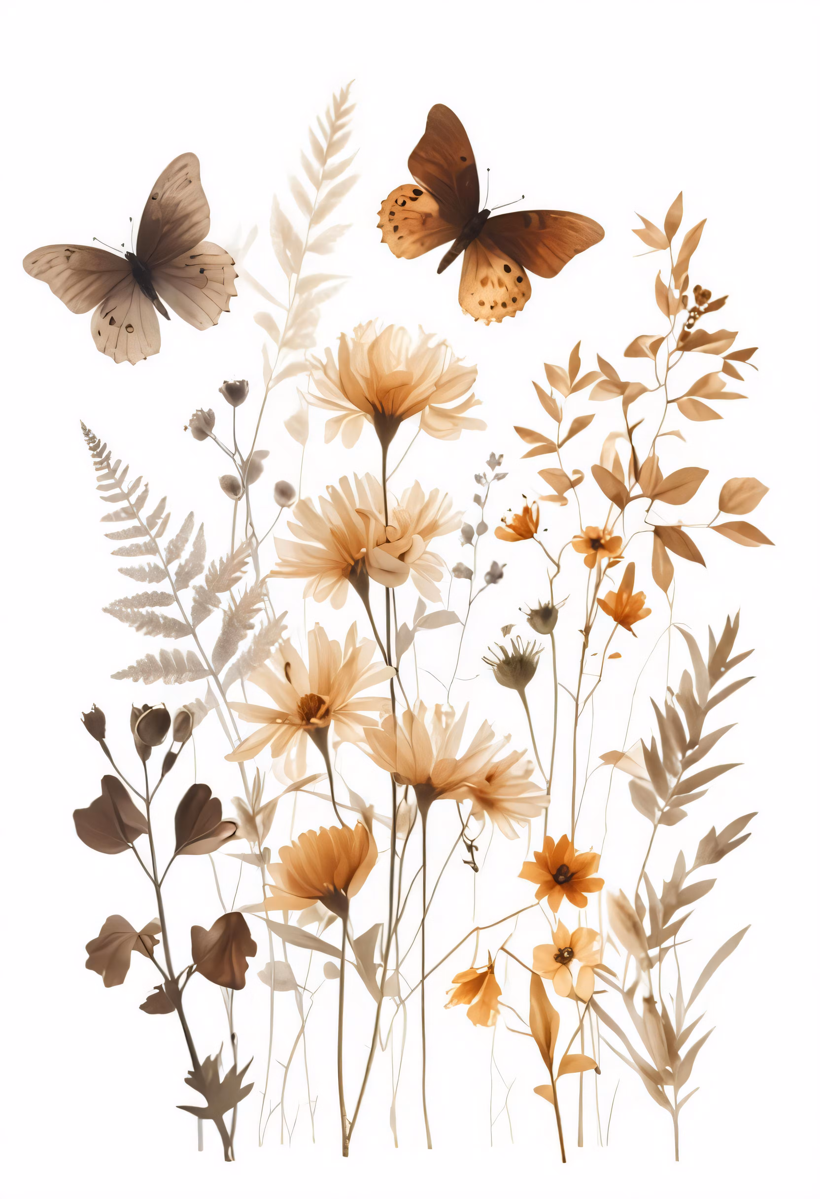 High resolution picture, free to use, an image of butterflies and plants that are yellow and brown