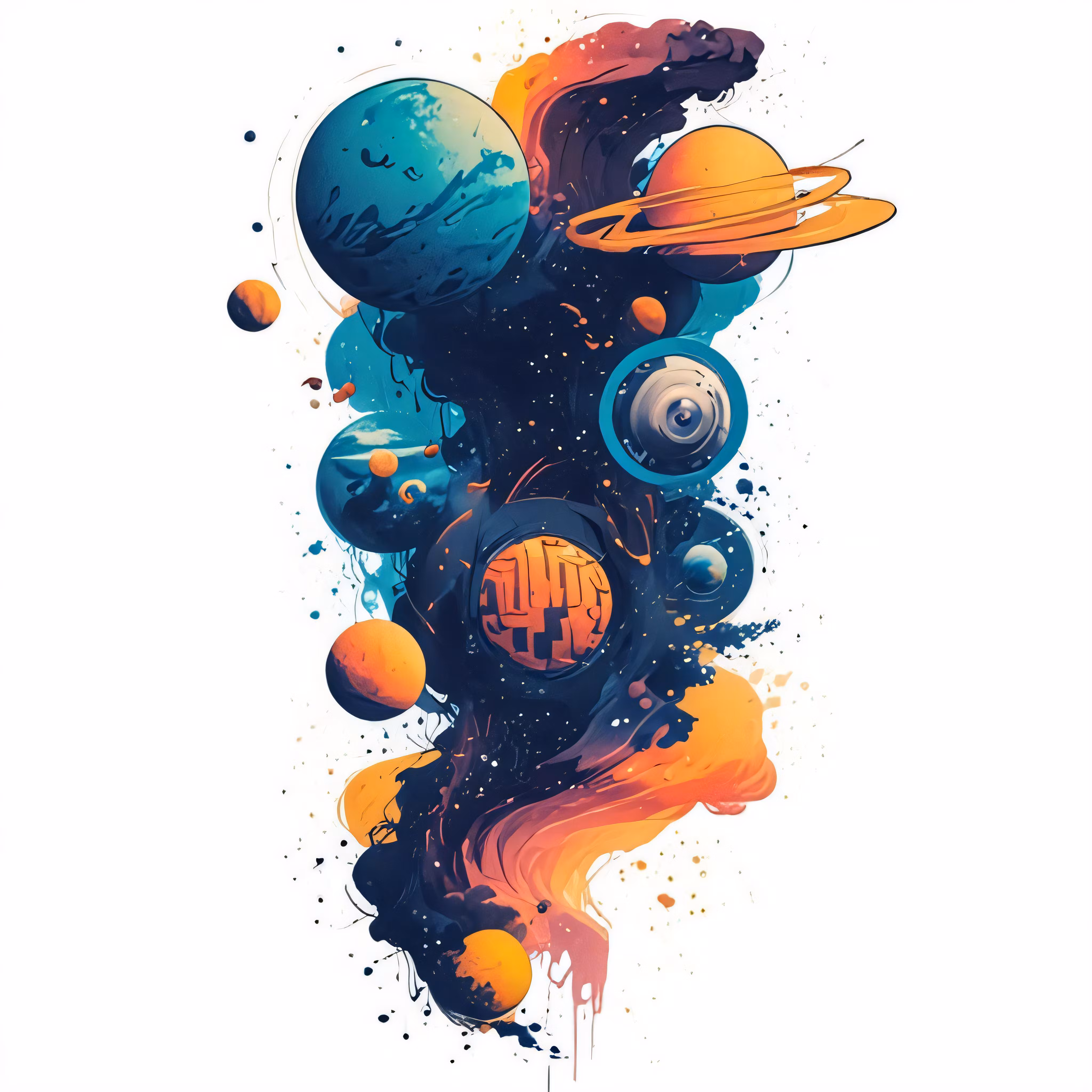 High resolution picture, free to use, an image of planets and sun with a white background