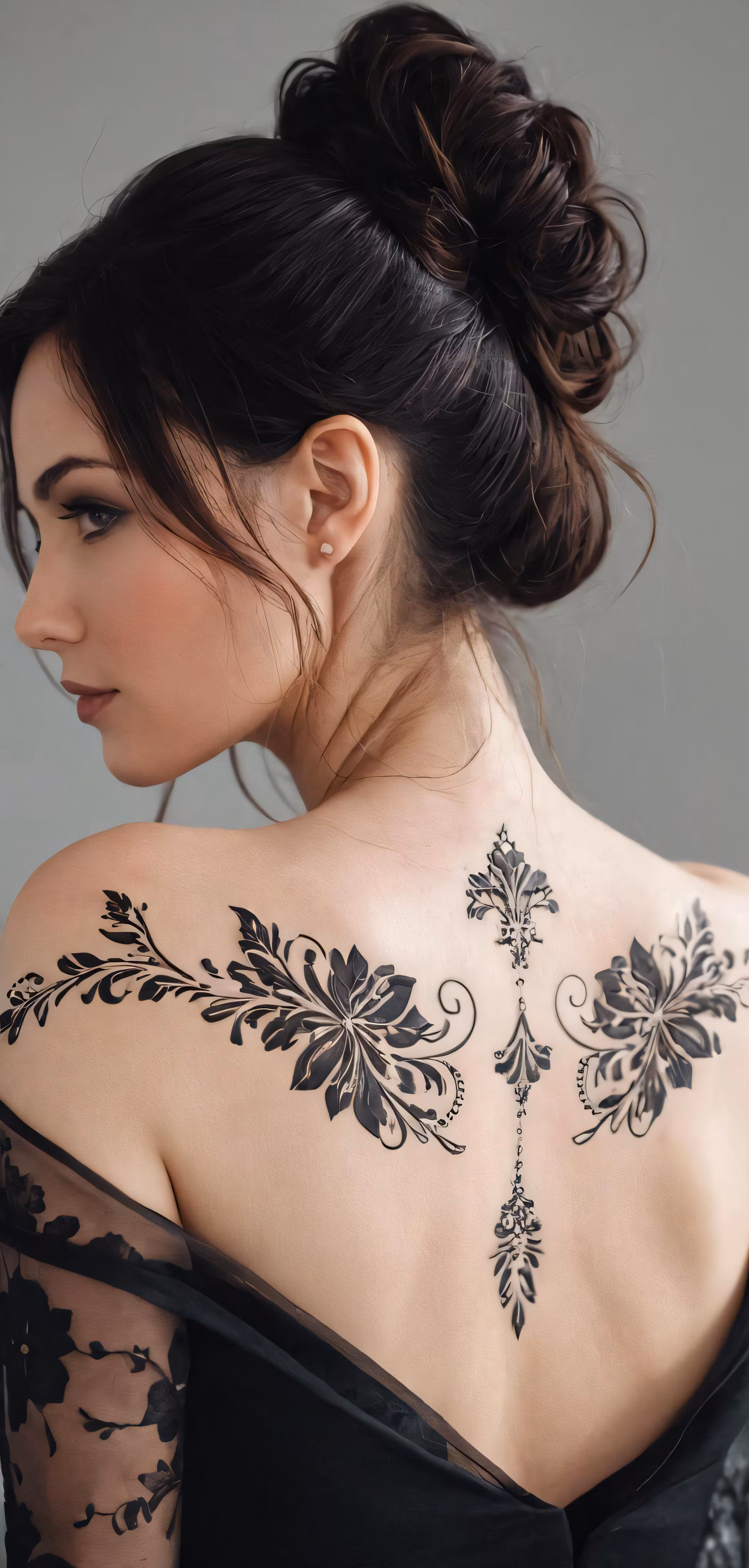 High resolution picture, free to use, an image of the back of a woman with tattoos