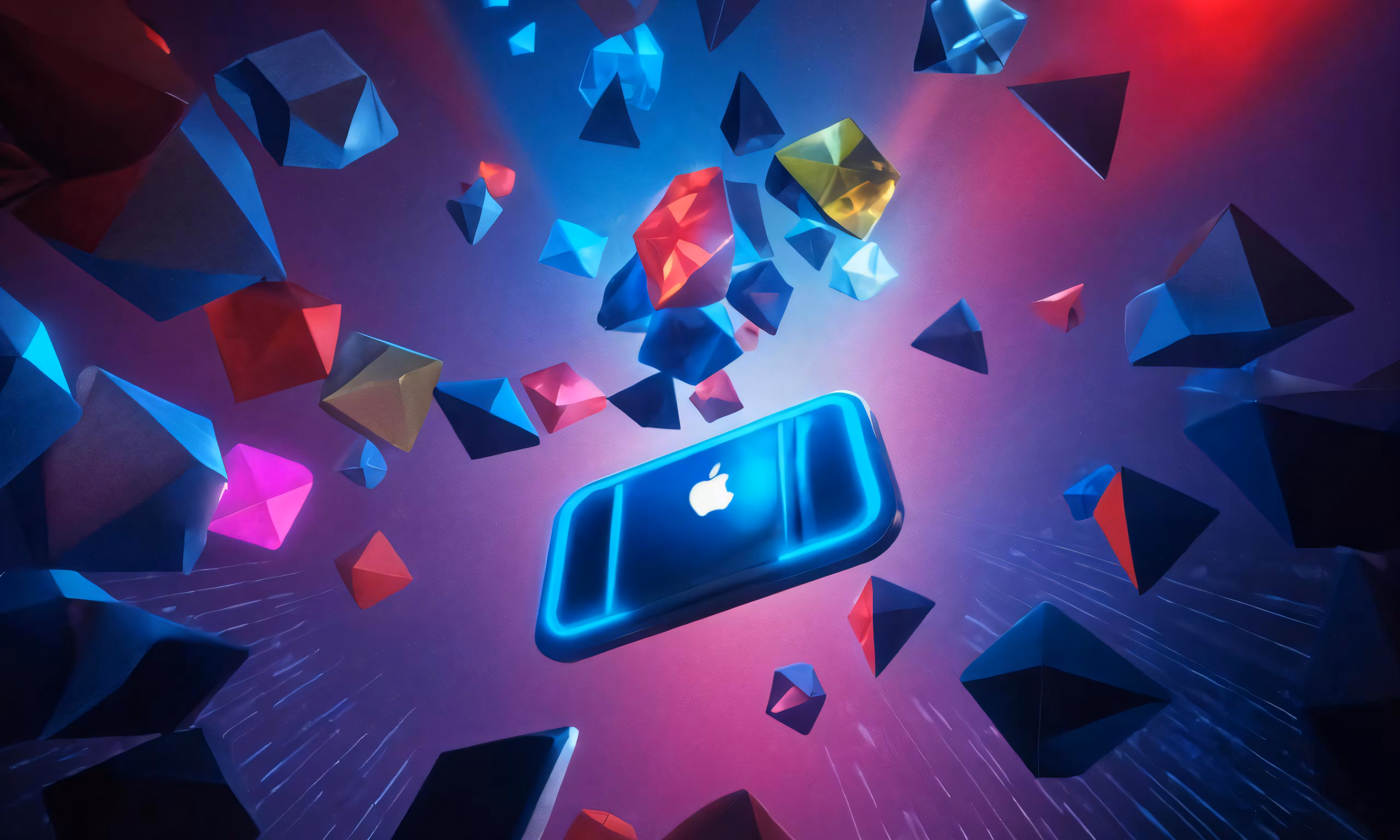 High resolution picture, free to use, an image of the mac logo surrounded by cubes and shapes