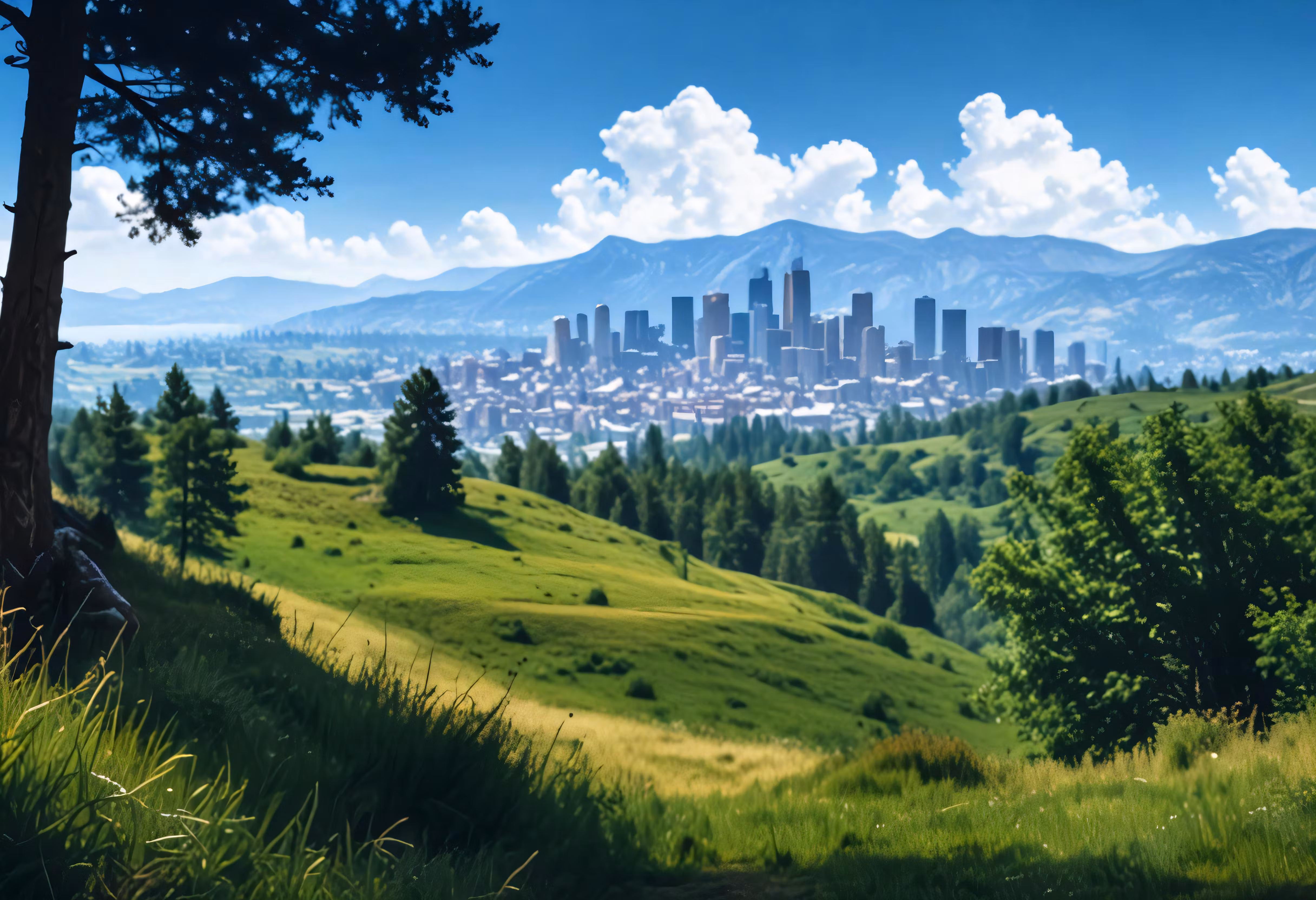 High resolution picture, free to use, an impression style painting of a beautiful city in the distance