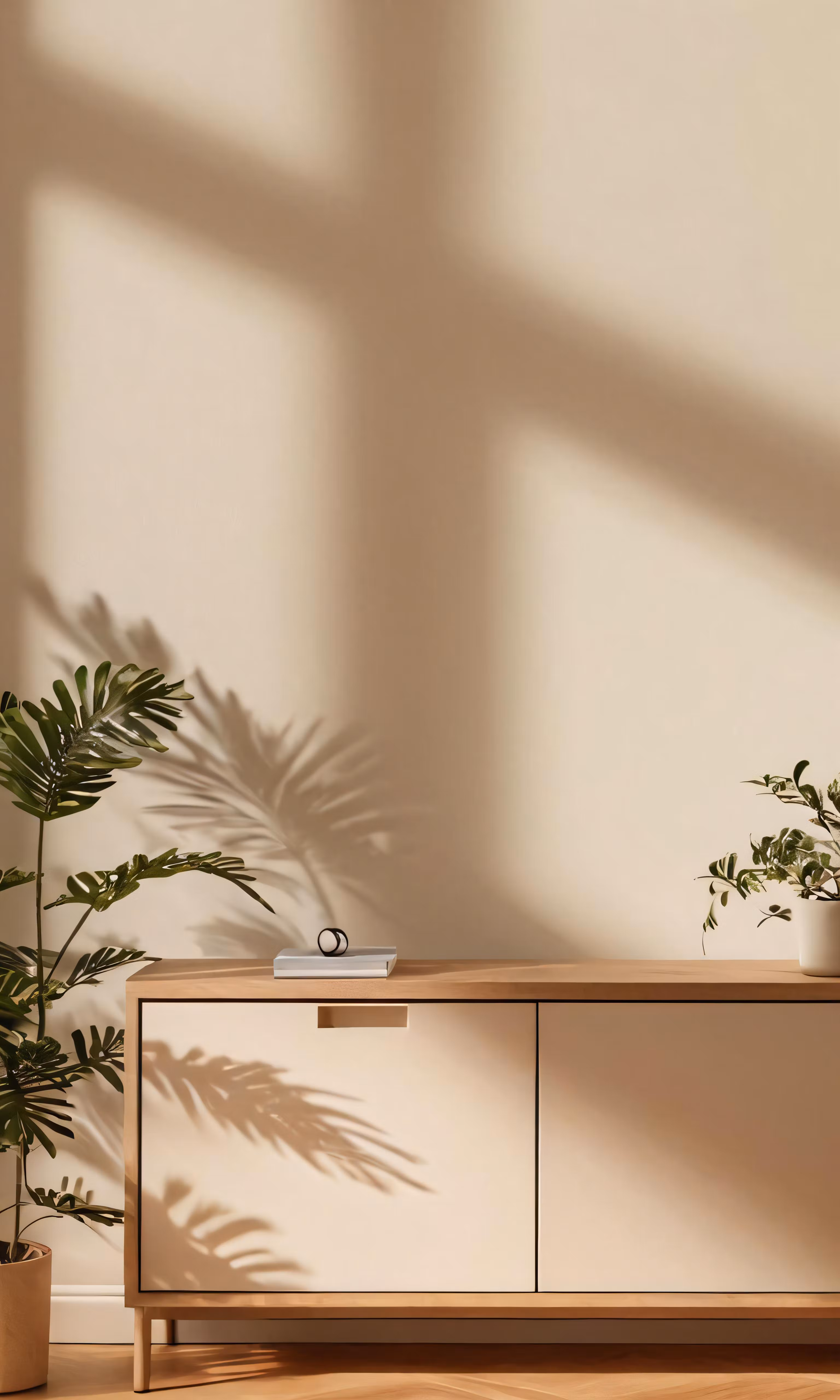 High resolution picture, free to use, an indoor plant in front of a cabinet