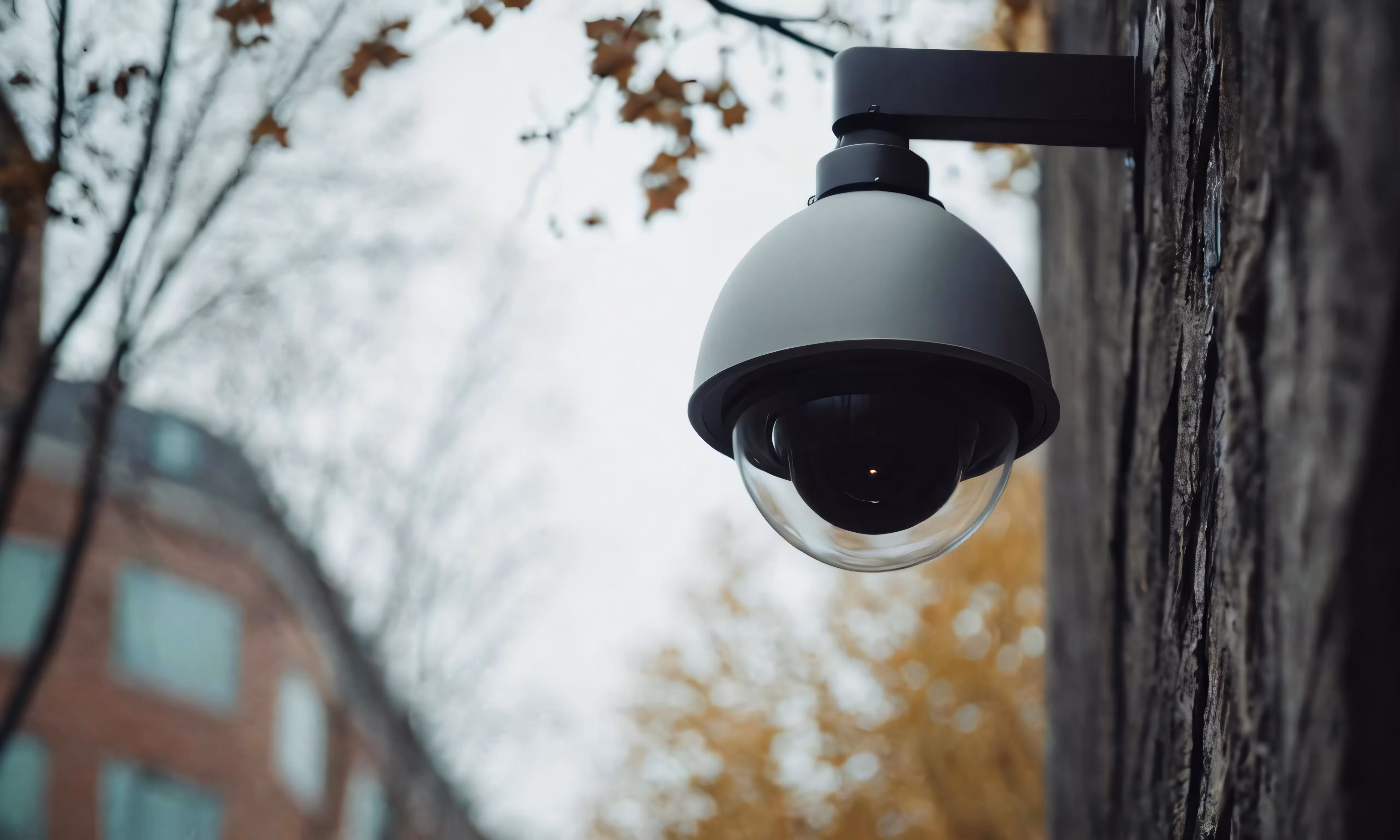 High resolution picture, free to use, an industrial outdoor security camera with the light on