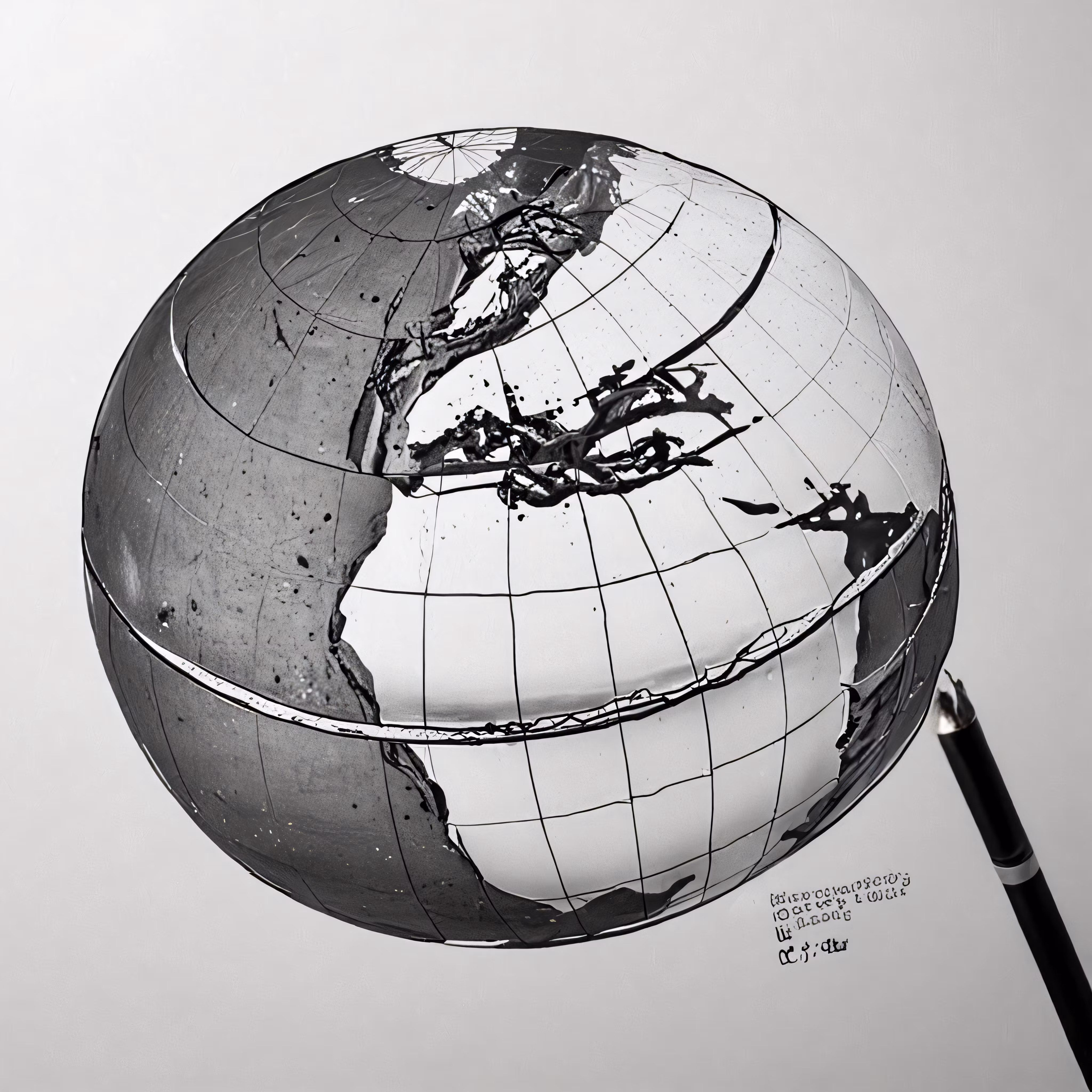 High resolution picture, free to use, an ink drawing of a ball of the world on a white paper
