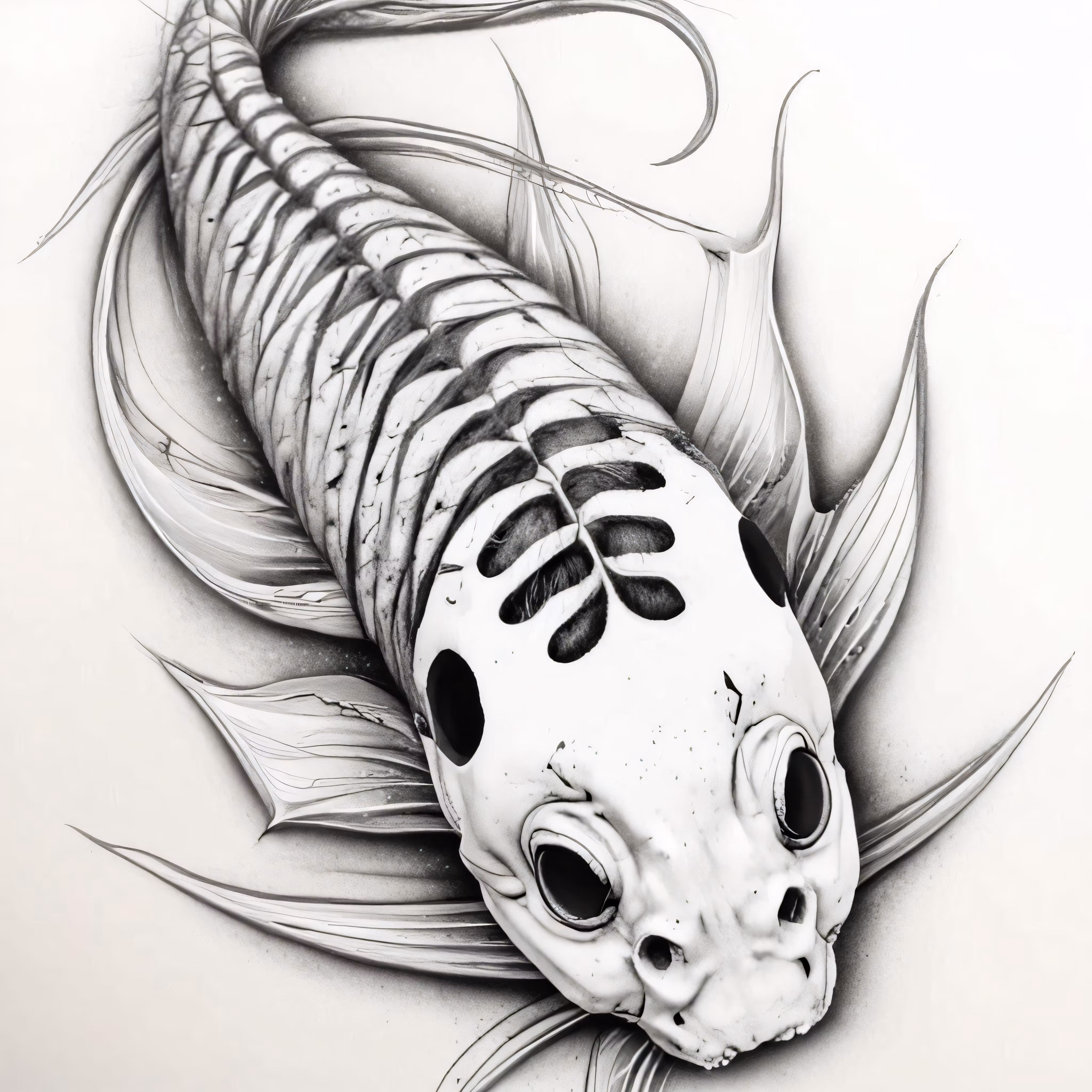 High resolution picture, free to use, an ink drawing of a fish with skeleton face